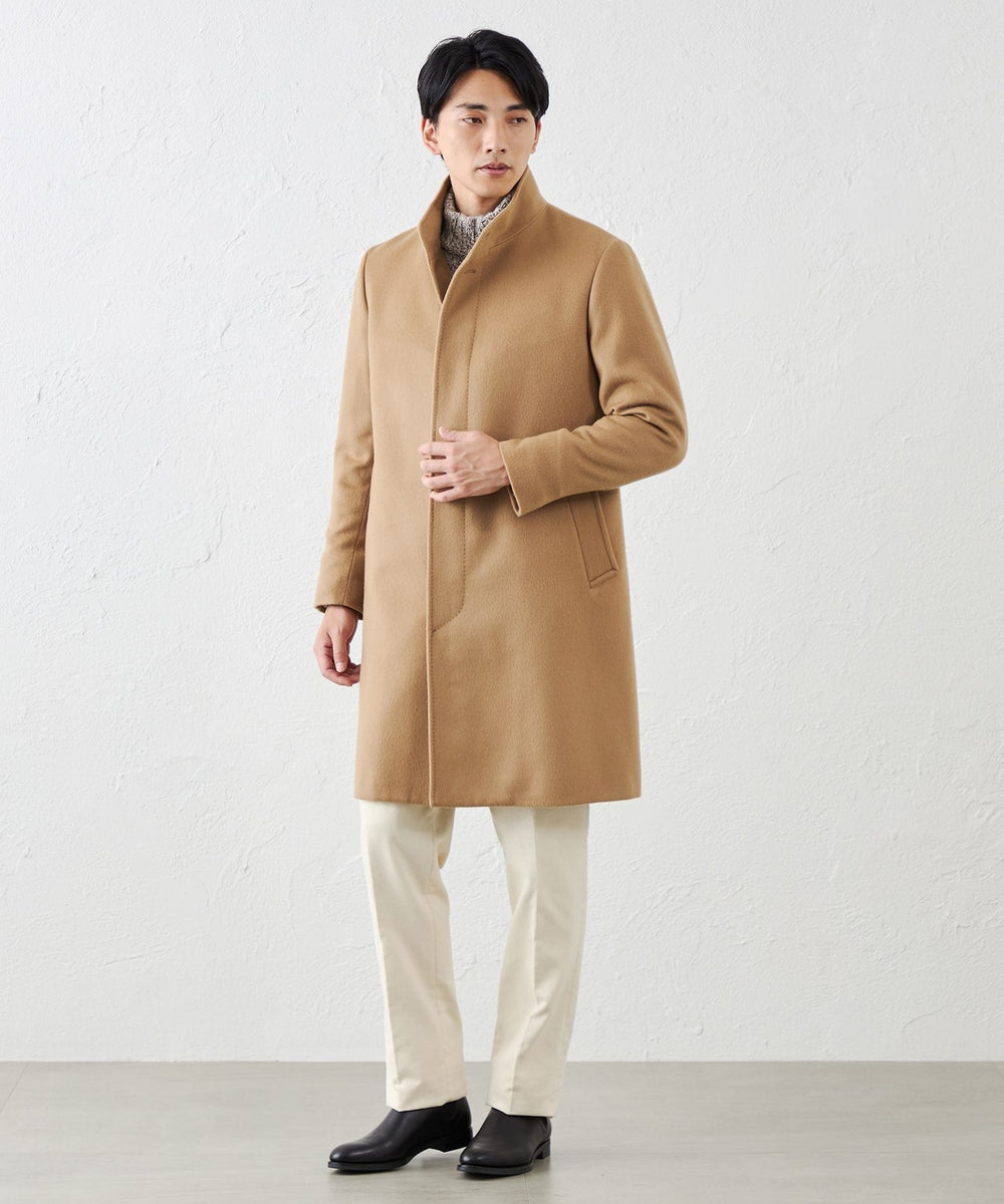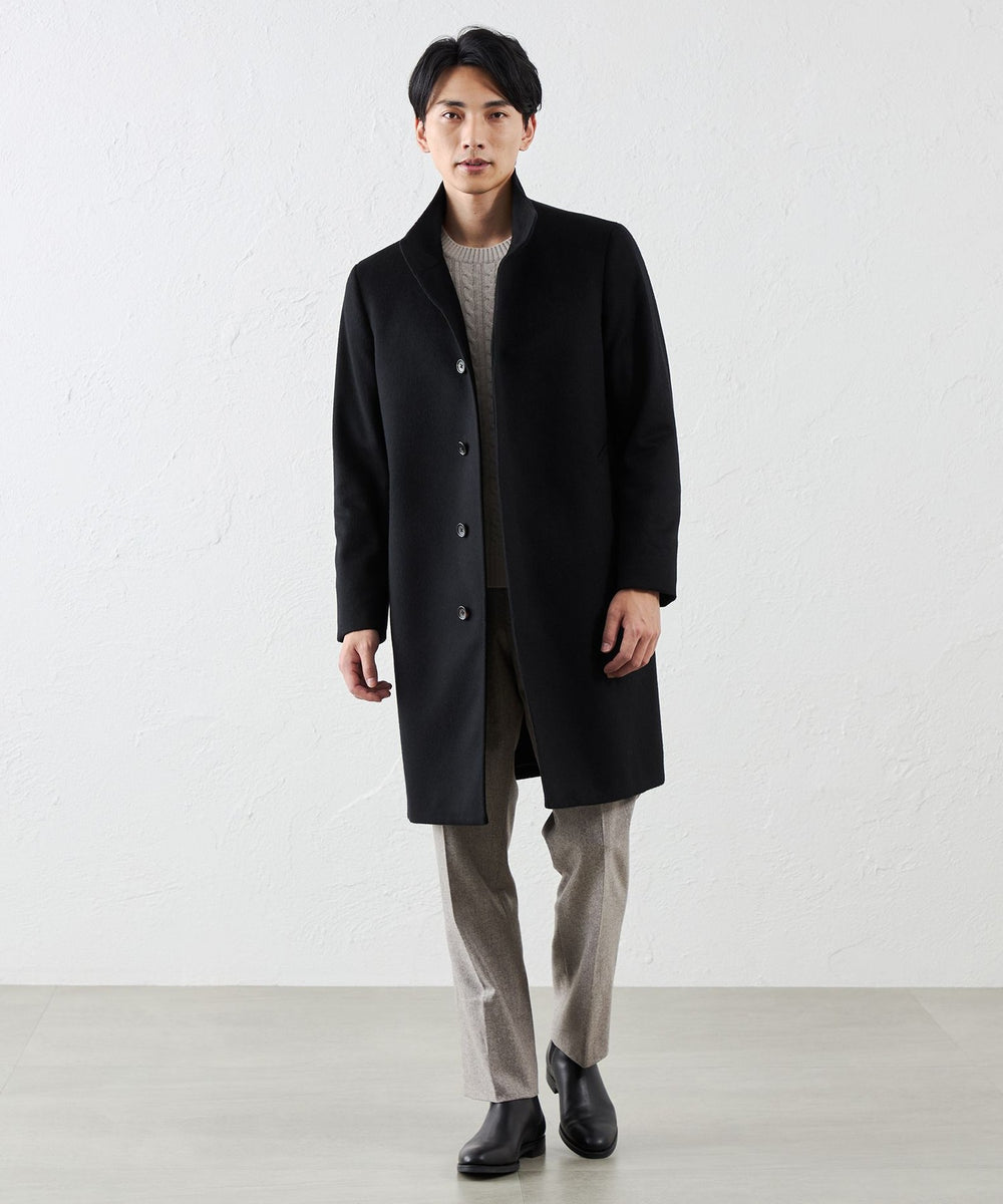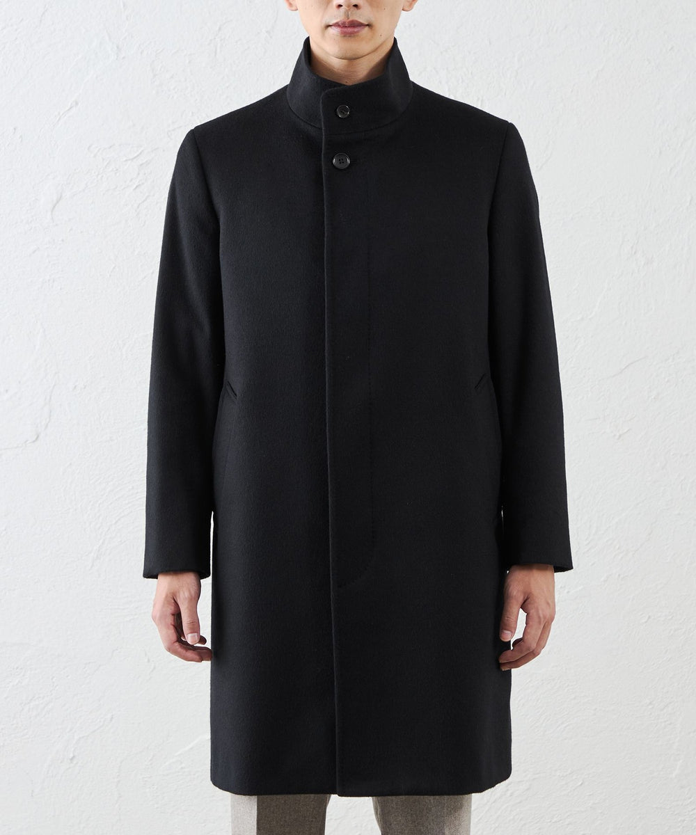 カシミヤ混ウール生地が本来持つ美しくリッチな風合いを損なうことなく、“耐久はっ水”の高機能を兼ね備えた開発素材「Rain Wool (R)」を使用。