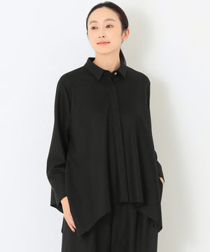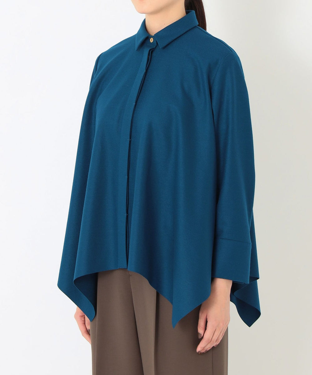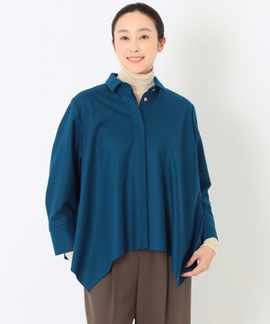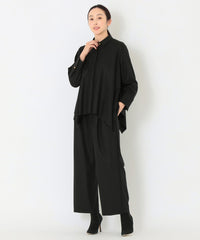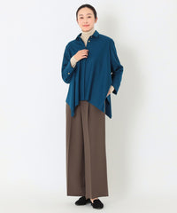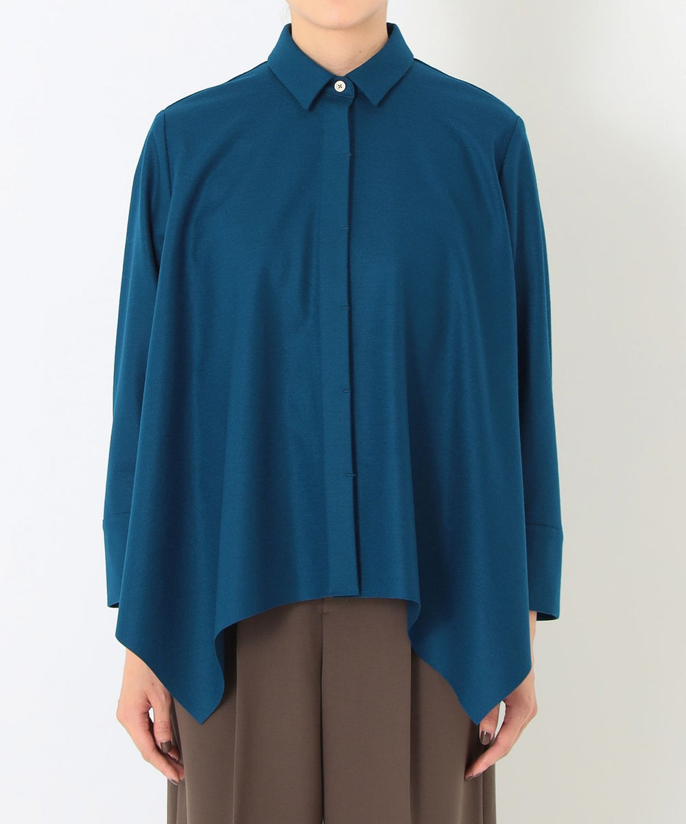 世界に数台しかない希少な編み機「バランサーキュラー(R)」で編み上げた、まるで布帛のように美しく、それでいたジャージーの軽さと伸縮性を兼ね備えたハイブリッドな素材を採用しています。