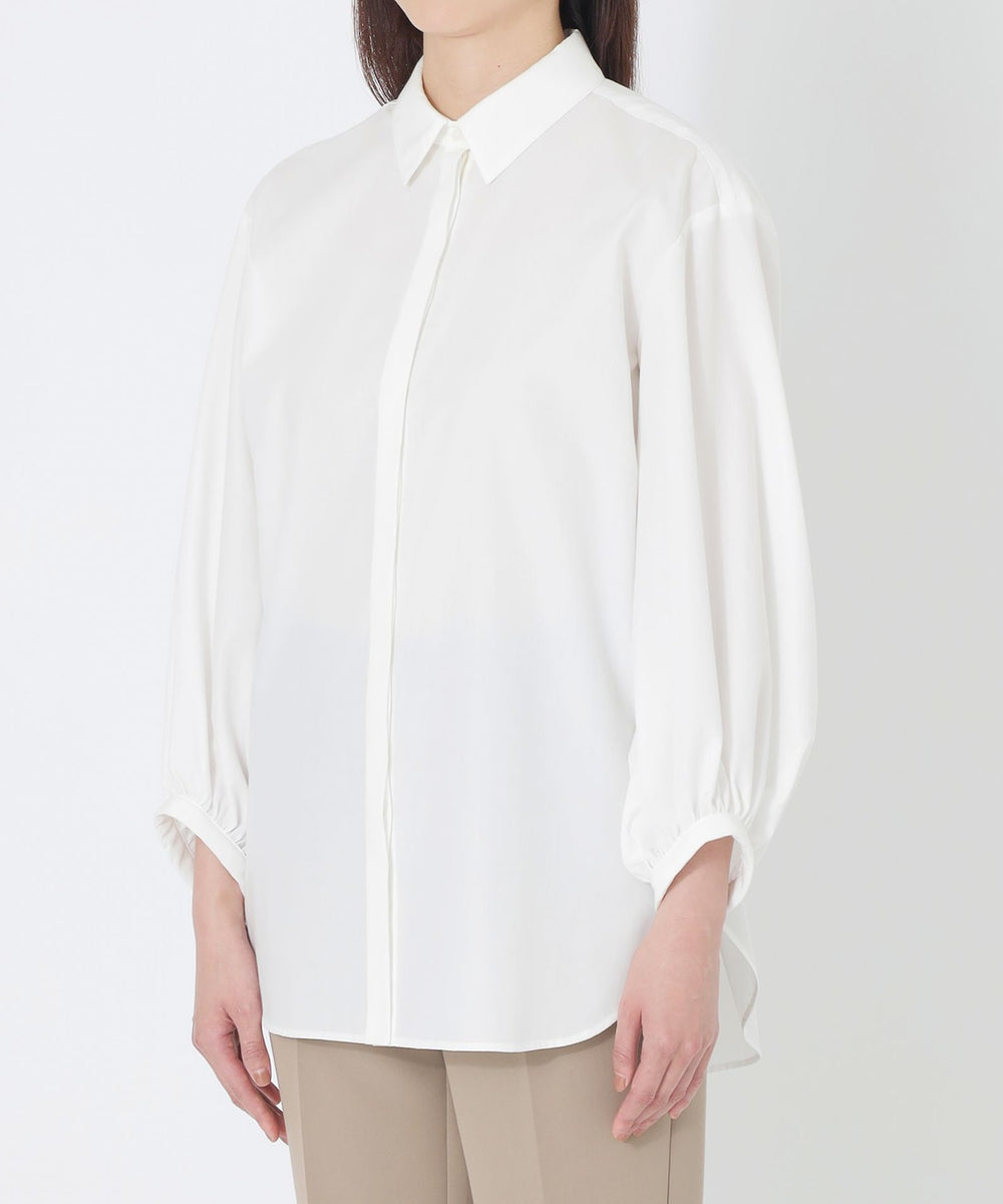 ふんわりとしたボリューム袖が華やかな襟付きシャツブラウス。シンプルなコーディネートに取り入れるだけで今年らしい旬なスタイルが完成します。ジレやベストをオンしてレイヤードするスタイルがおすすめ。