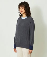 クルーネックのニットプルオーバー。色を組み合わせたブロックカラーニット。程よくゆとりのあるシルエットと、柔らかな肌触りでリラックスして快適に着用して頂けます。ボトムを選ばず、汎用性のあるニットです。