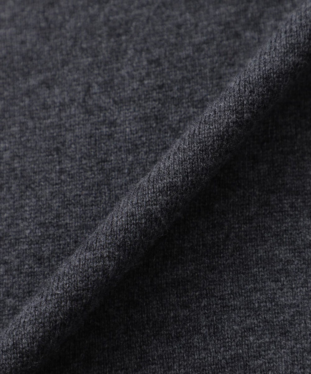 ウールは縮みにくく、カシミヤを加える事でよりふんわりとし、綺麗目な目面でありながら柔らかく優しい風合いもこの素材の特徴です。