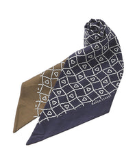 オメトリック柄をプリントした落ち着きのあるシルクスカーフタイ。