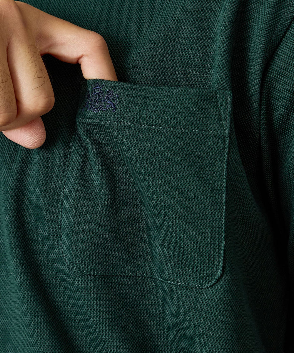 ポケット口にクレスト刺繍が入り、さりげないアクセントになっています。