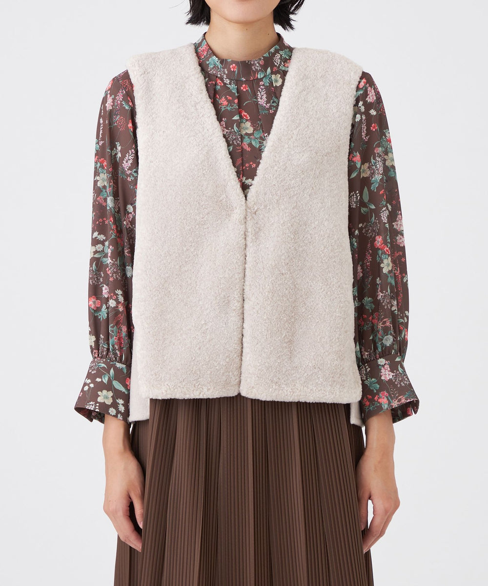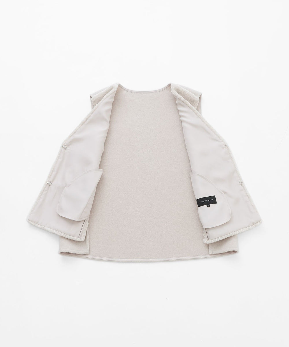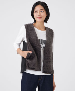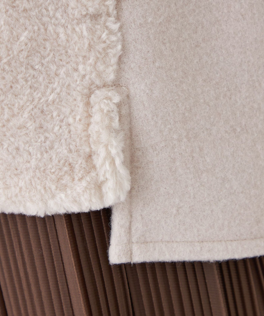 前身頃にのみフェイクファーを使用しているので、ボリュームが出すぎず、寒い時期にはインナーとしても活躍し、長いシーズンお使いいただけます。初秋から真冬までシーズン長く着用できるトレンドアイテムです。