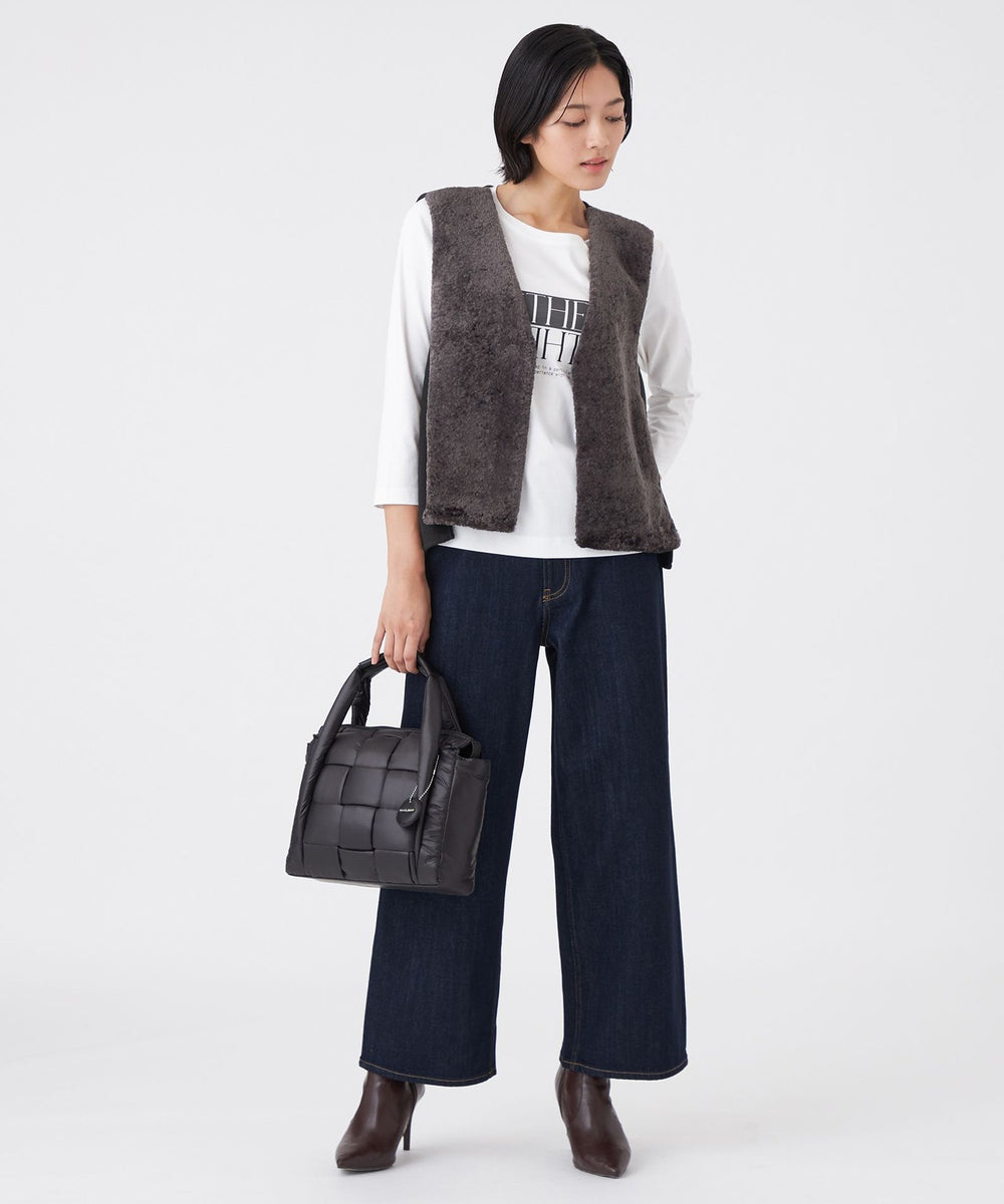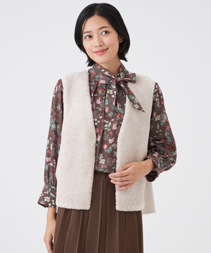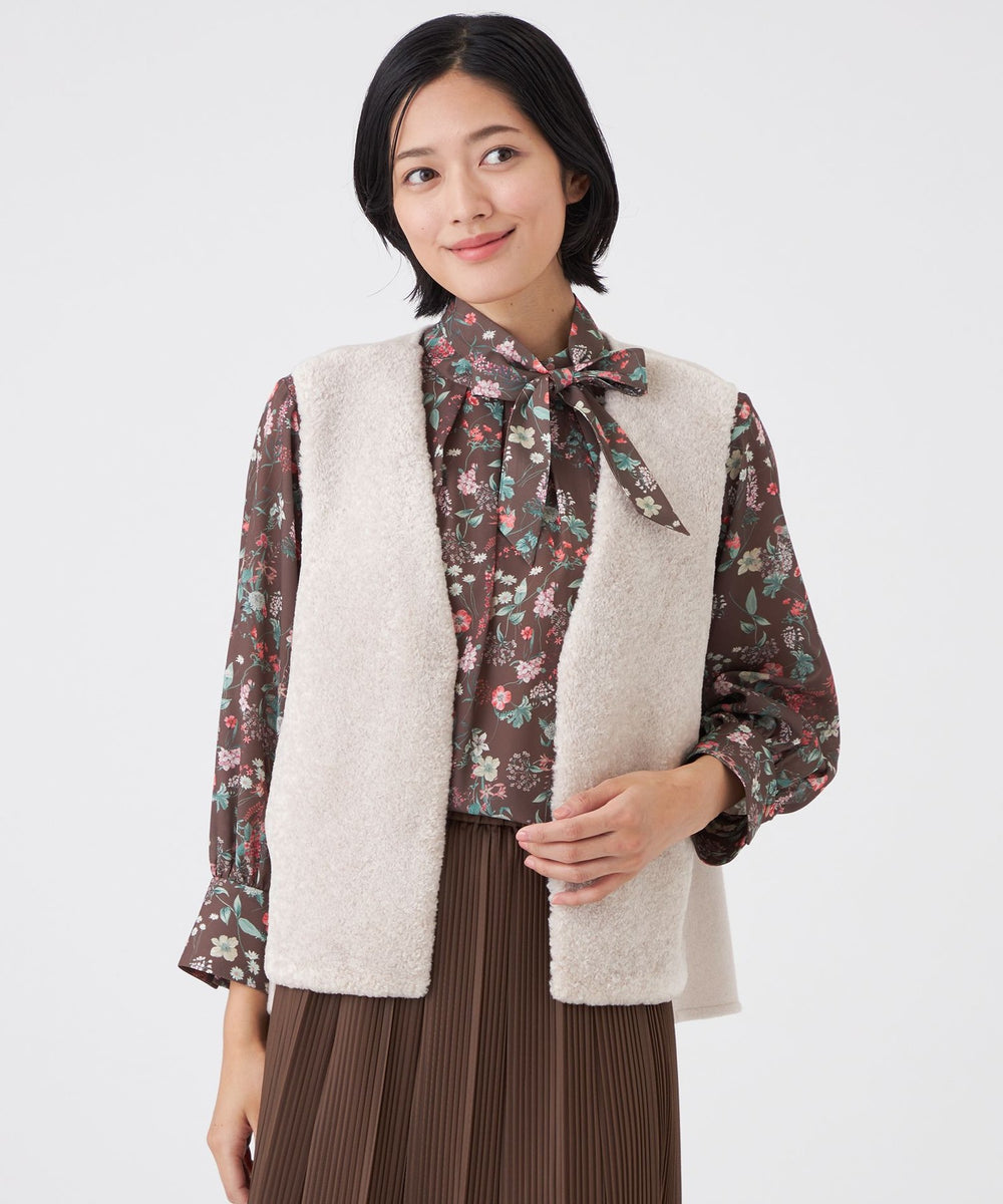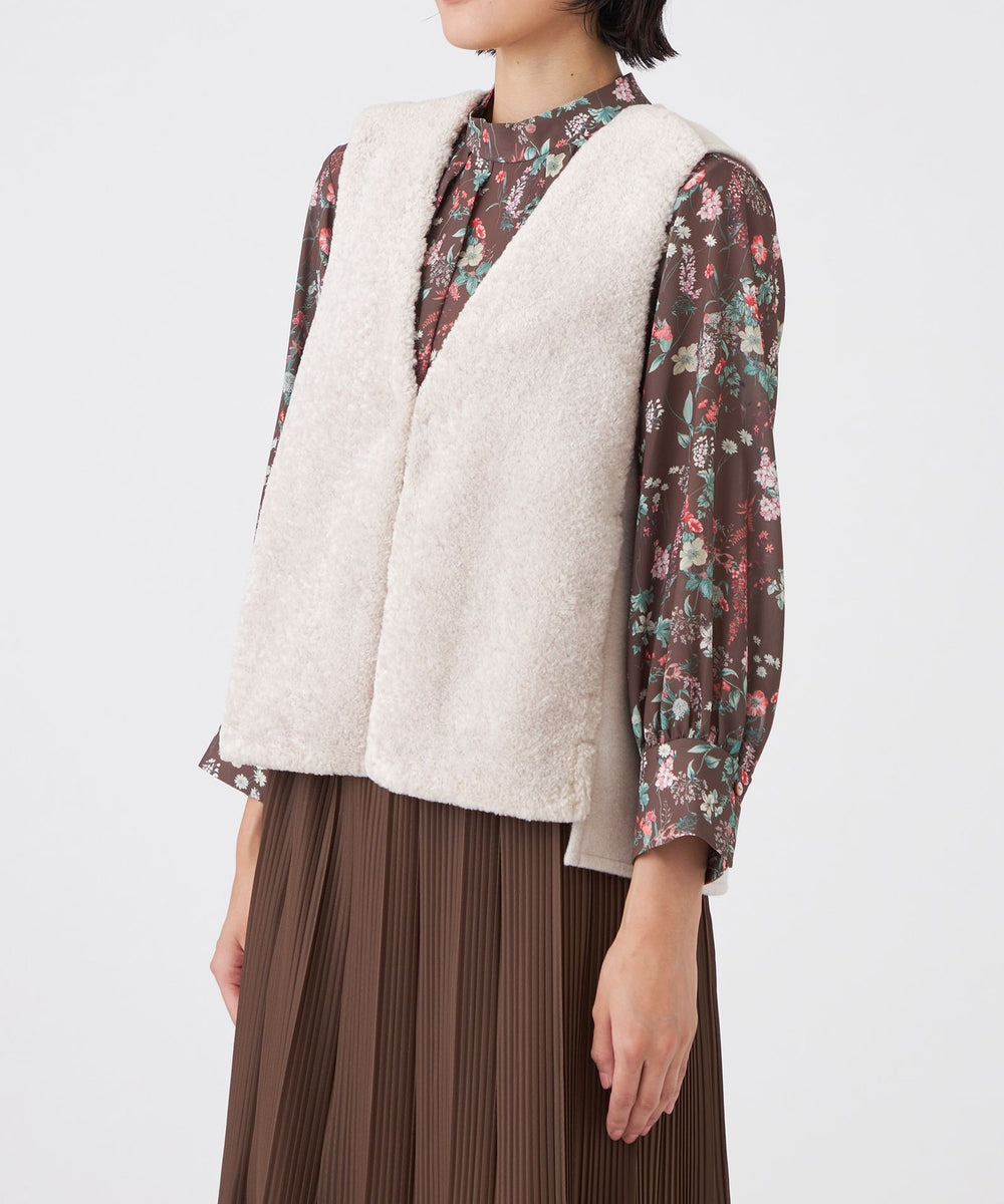 前身頃にのみフェイクファーを使用しているので、ボリュームが出すぎず、寒い時期にはインナーとしても活躍し、長いシーズンお使いいただけます。初秋から真冬までシーズン長く着用できるトレンドアイテムです。