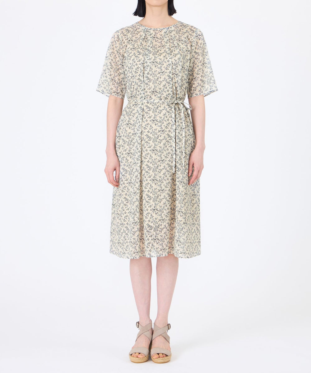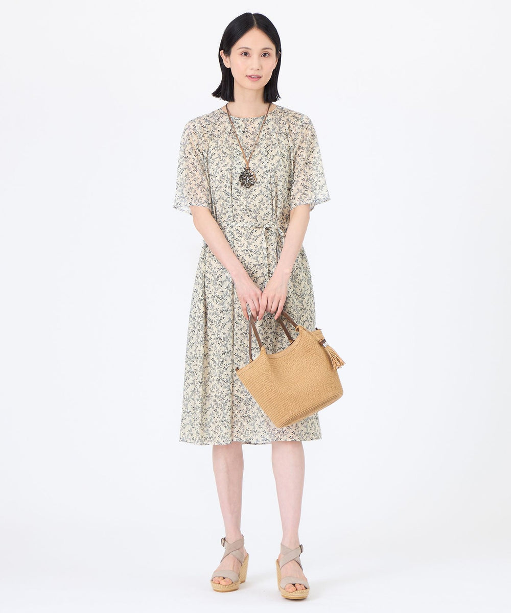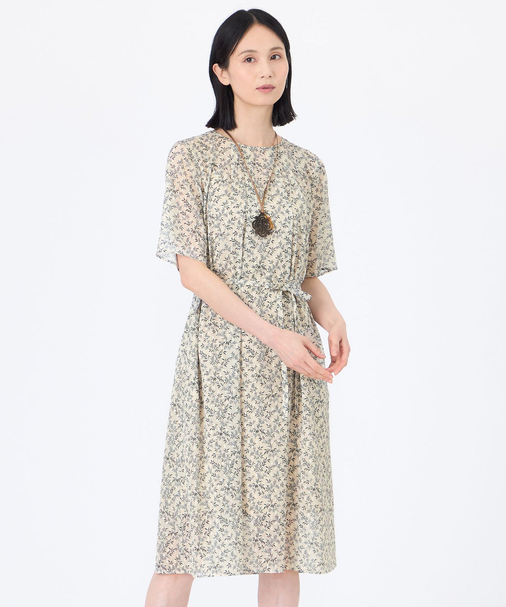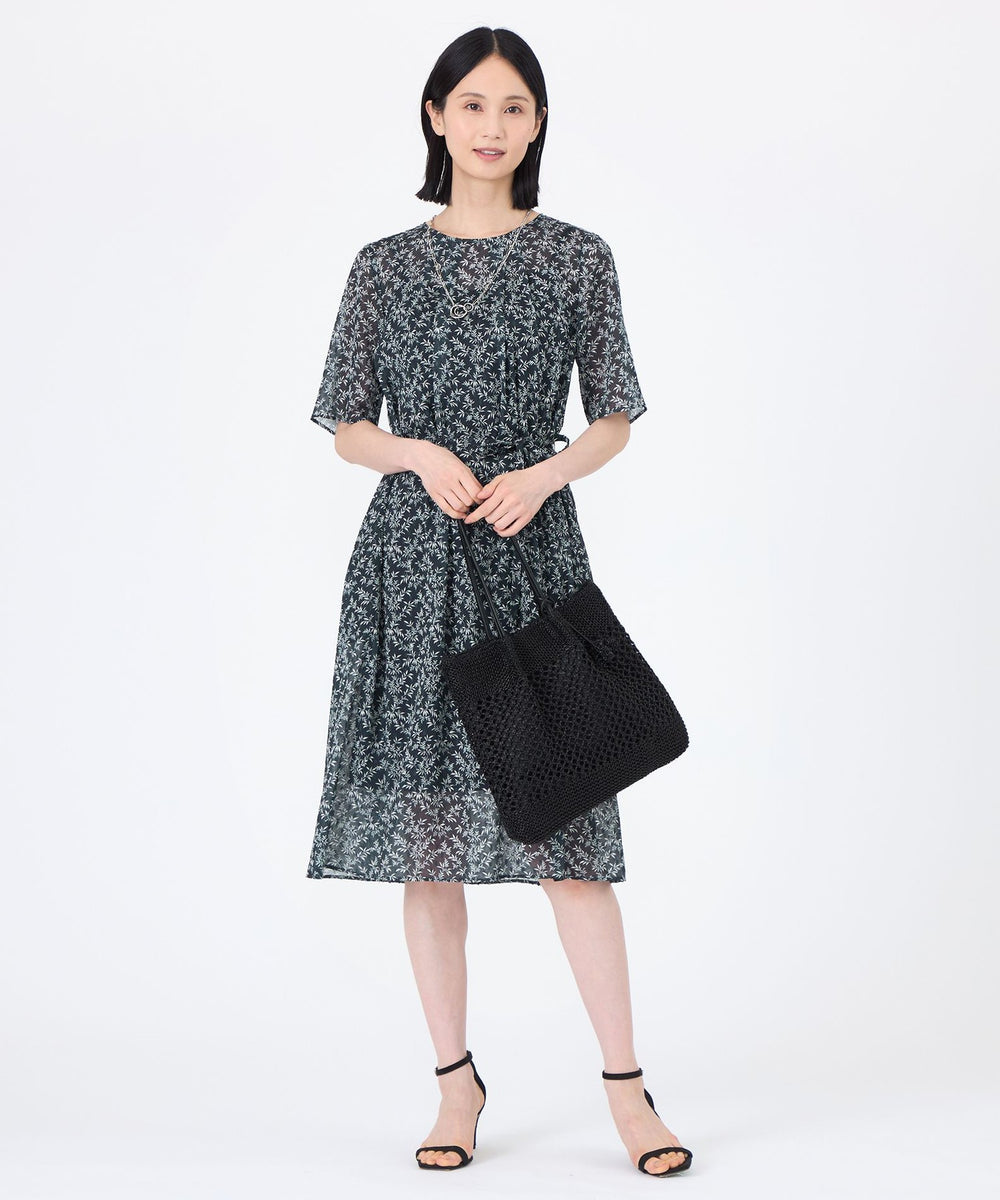 【ウォッシャブル】シャドーフラワープリントワンピース