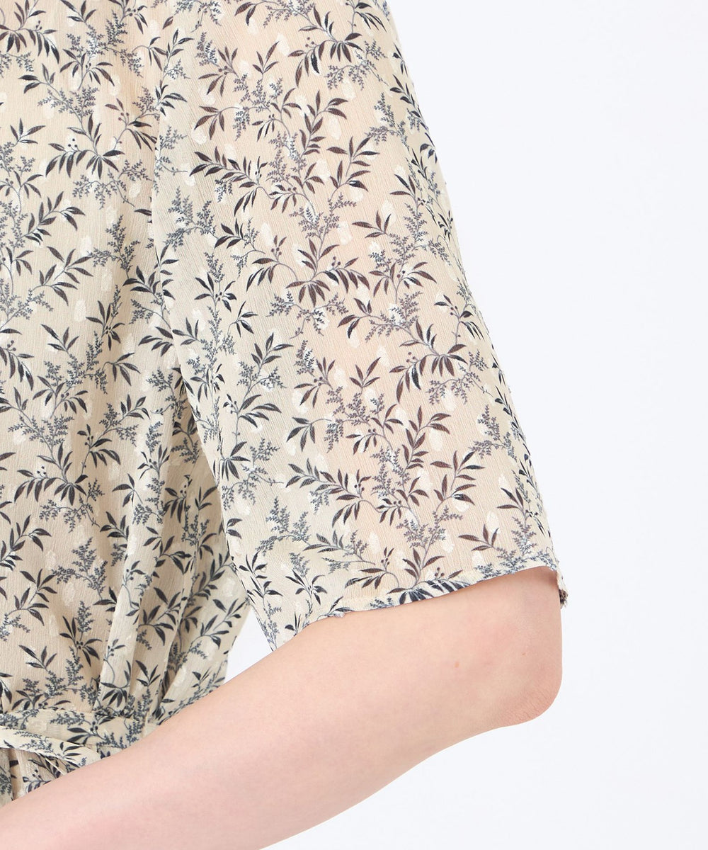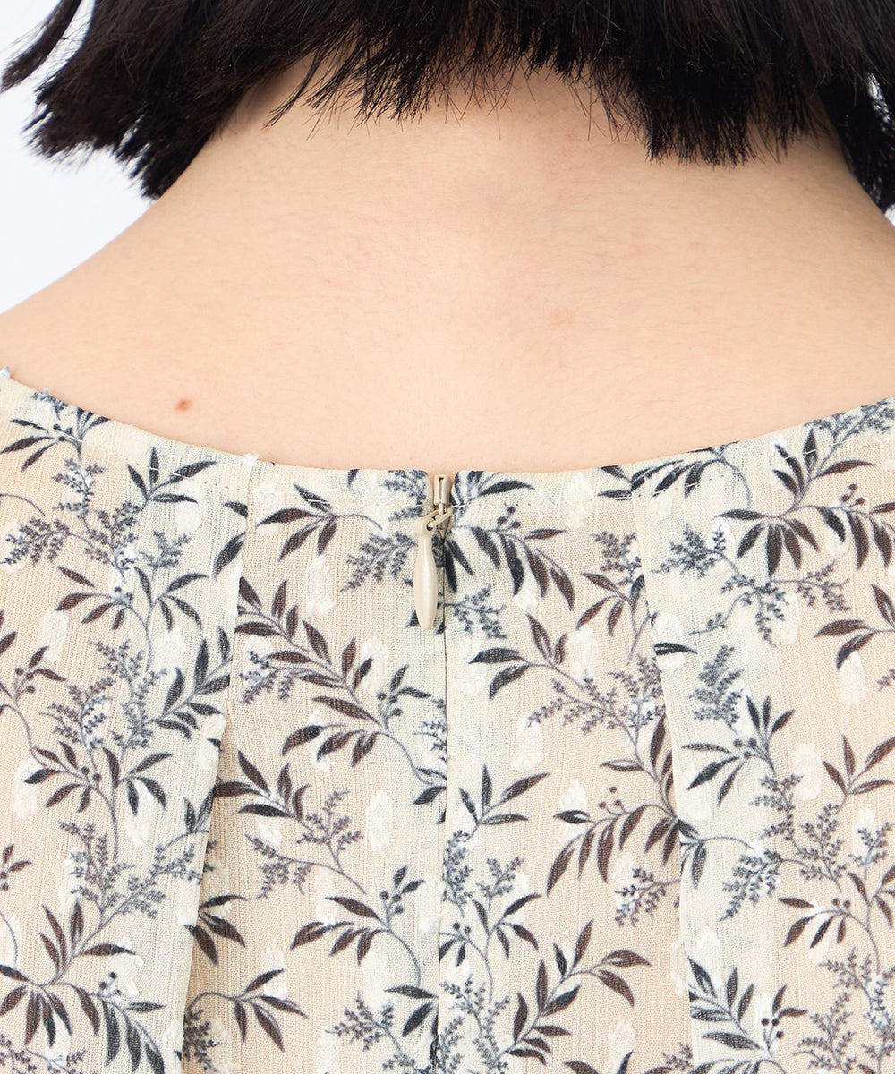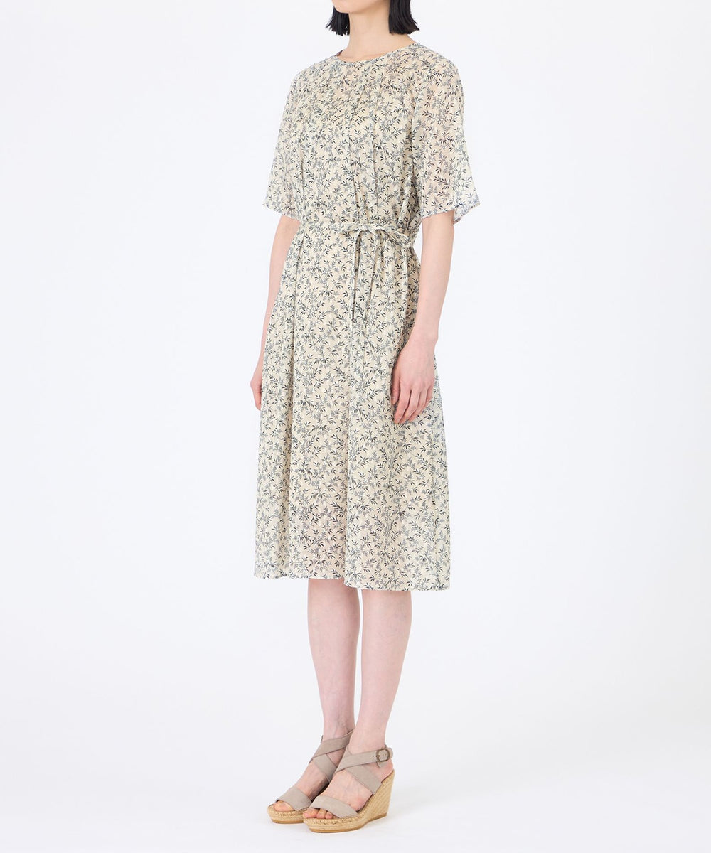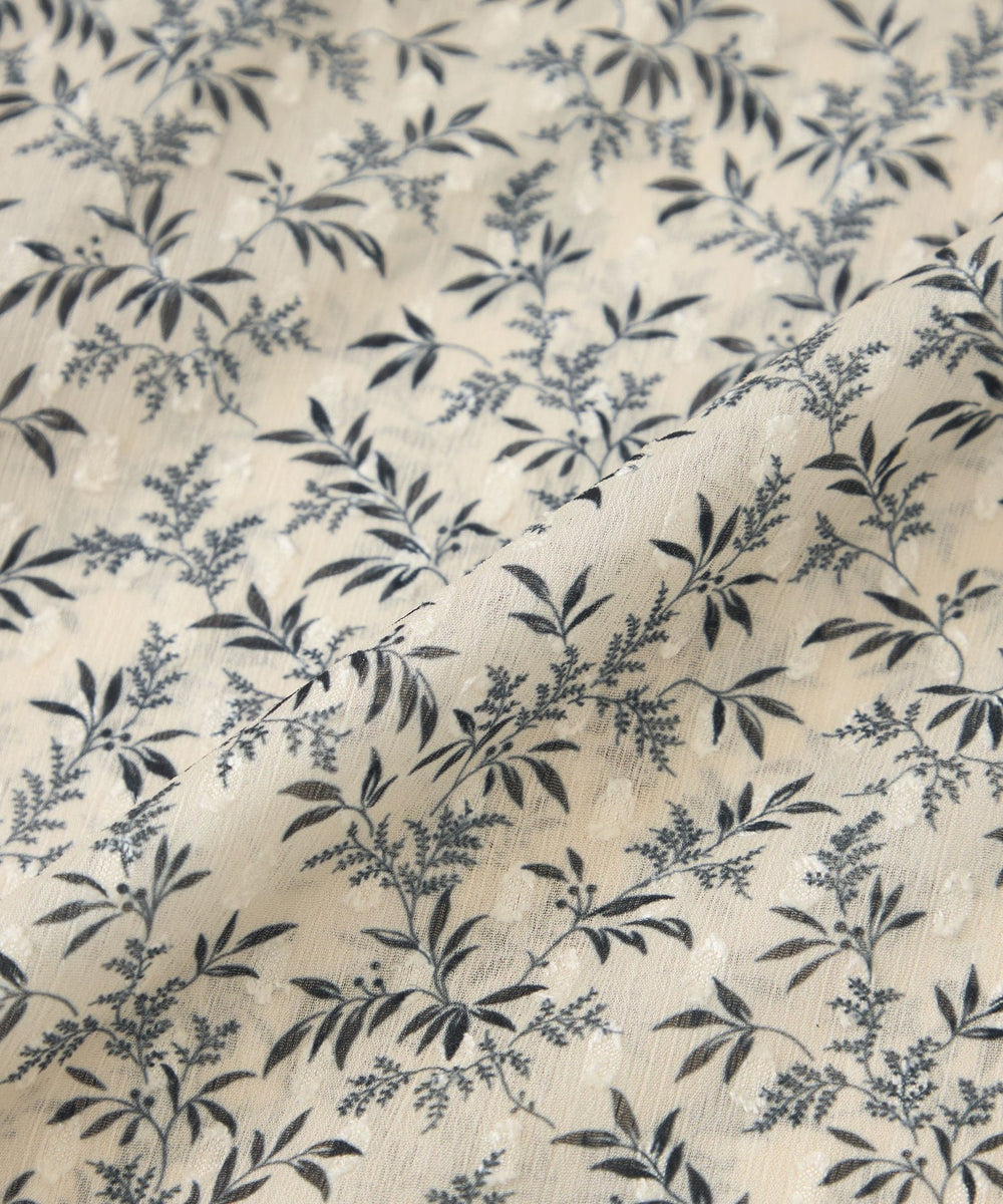 イタリア製の上質な素材を使用し、身近な草花を繊細に描いたモダンなプリントが特徴です。ジャカードシフォンにプリントされ、上品で奥行きのある仕上がりで高品質な一着です。