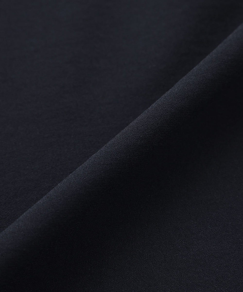 タテヨコ2000T/M(回転)の強撚糸を使用することで、撚糸感、ドライな質感と美しいドレープ性を実現しています。2WAYストレッチなので動きやすいです。染色工程によるタンブル加工を施しビンテージ仕上げしており、ナチュラルなしわ感がこなれた印象を与えます。UVカット・着用じわになりにくい嬉しい機能も充実した素材です。