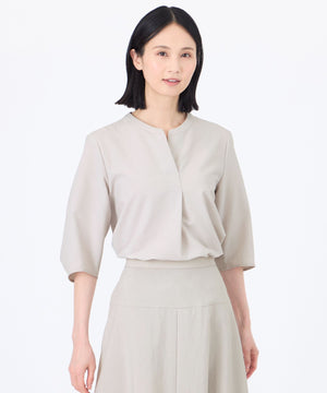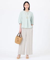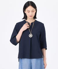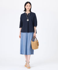 キーネックで襟あきが涼しげな印象のかぶりブラウスです。