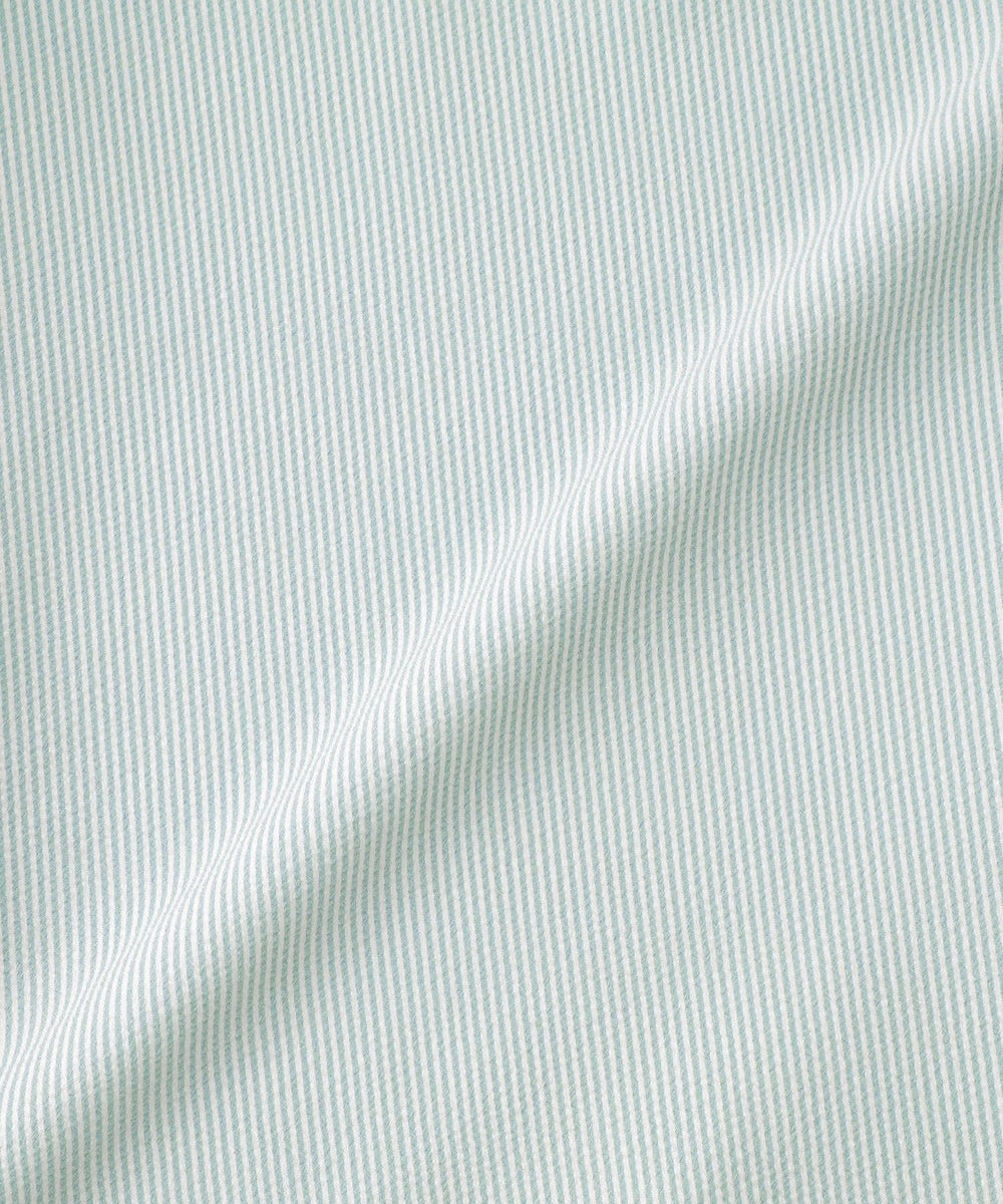 ストレッチ性のあるポリエステルを使用しており、タテにもヨコにも伸びる2WAYストレッチのサッカー素材です。シワになりにくいためイージーケアです。吸水速乾機能がありドライな風合いが特徴です。