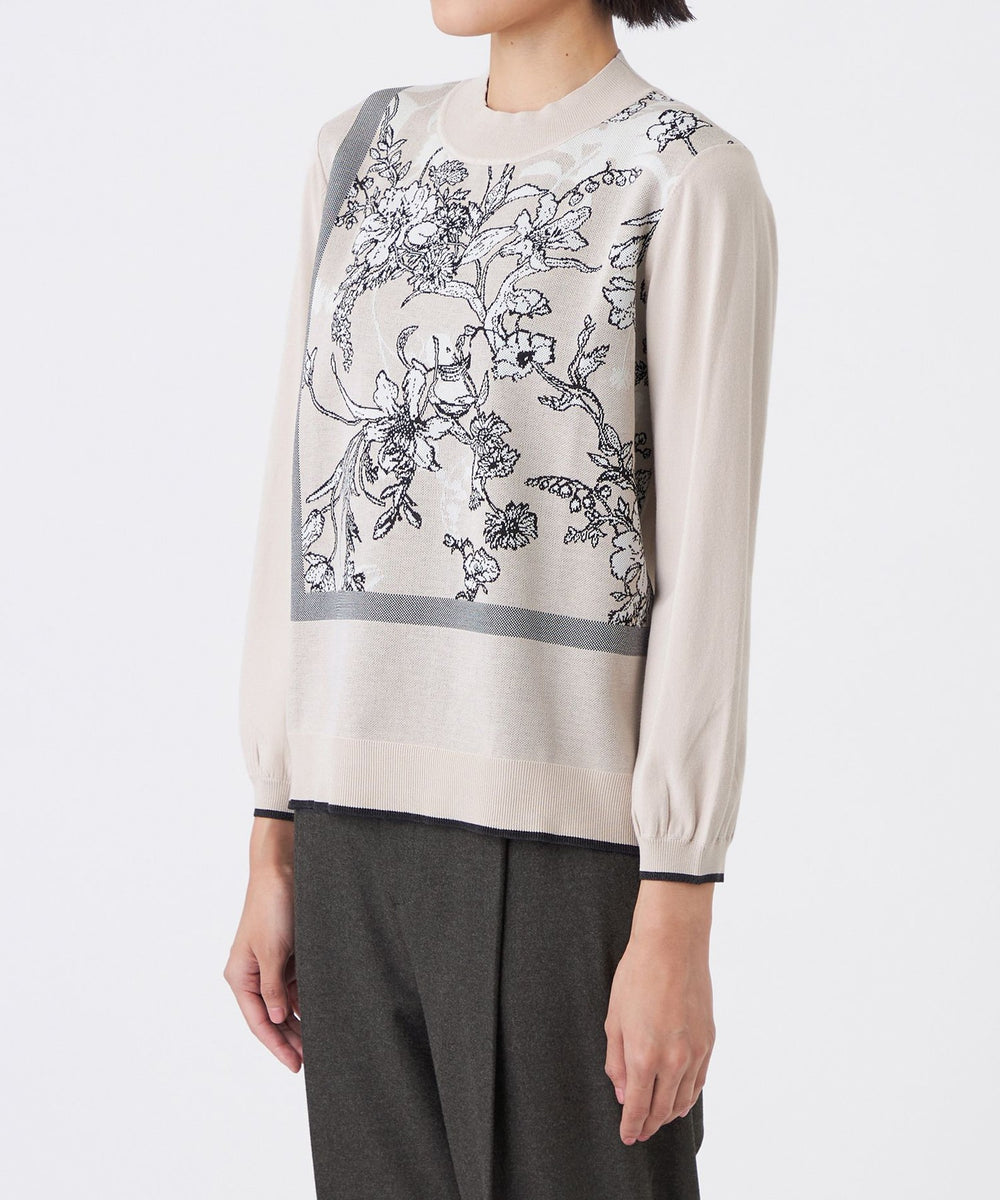エッチングフラワー柄を繊細なハイゲージのジャカード編みで施したプルオーバーです。