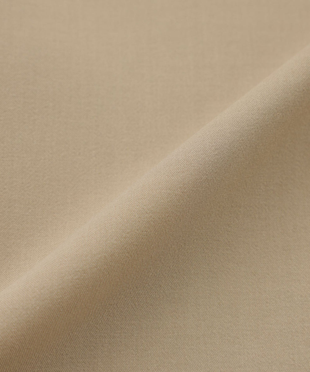 トロトロになるまで減量加工を施し、やわらかく仕上げた梳毛調の合繊素材です。軽やかでふんわりとした風合いと、なめらかな着心地が特徴です。マシンウォッシャブル、防シワ、接触冷感の機能も備え、お手入れしやすく快適に着用いただけます。