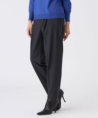 タックを入れ、腰回りに少しゆとりを入れることで窮屈感なく動きやすく仕上げています。センタープレス入りできちんと見えつつ、後ろウエストがゴム仕様なので着心地が楽です。