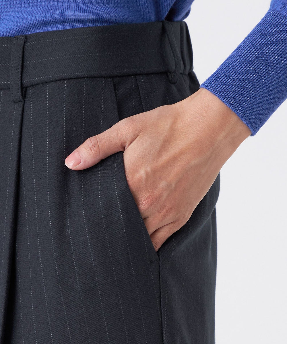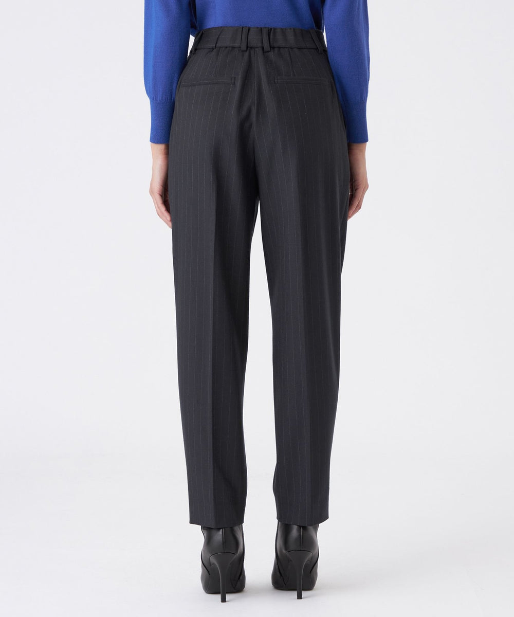 ストライプ柄のタックテーパードパンツです。