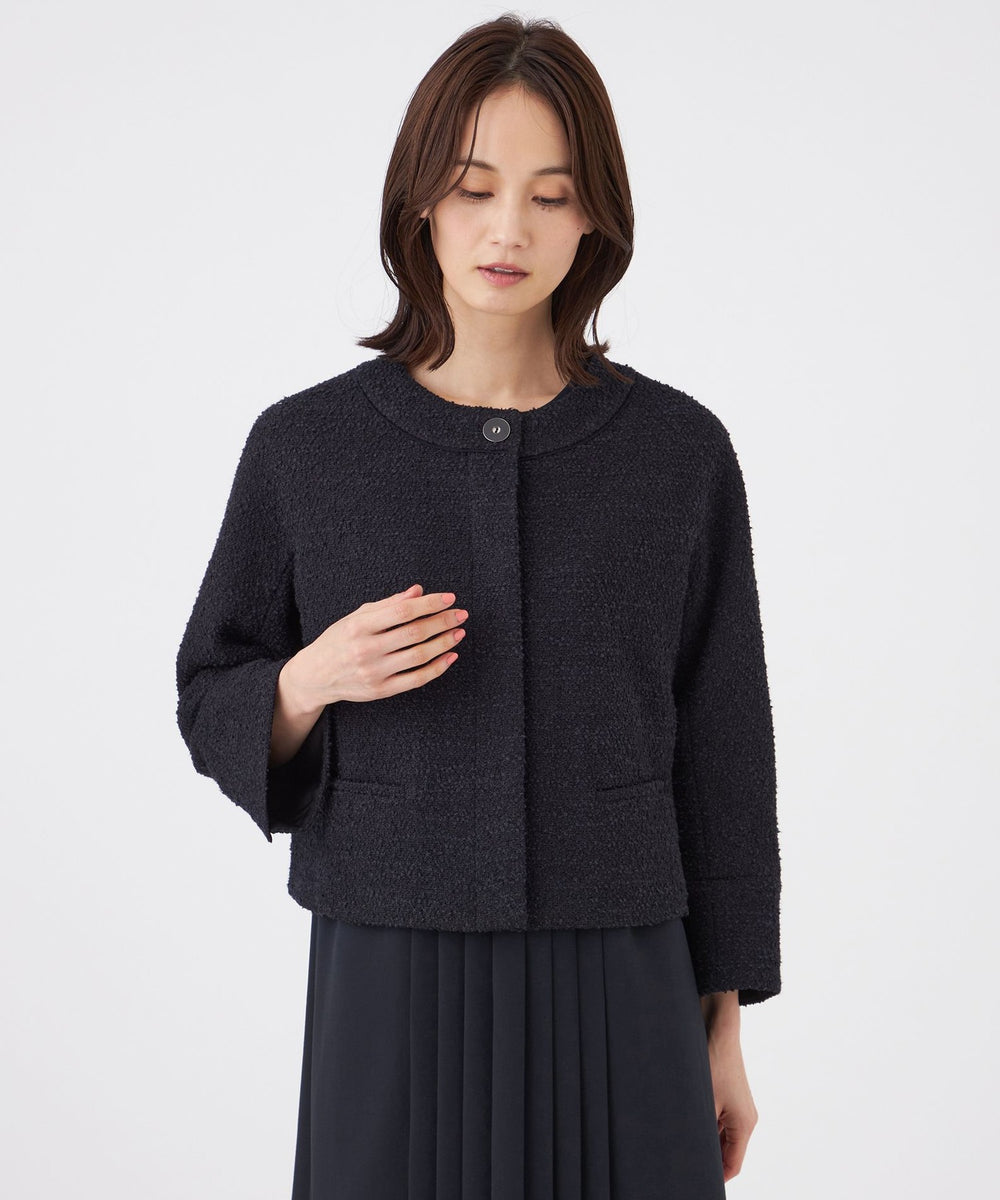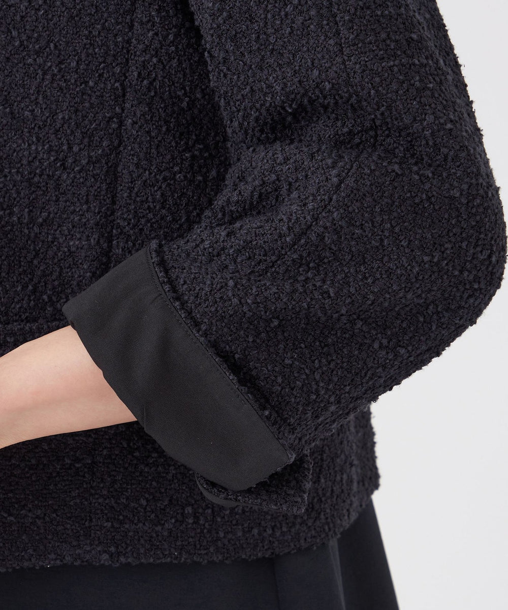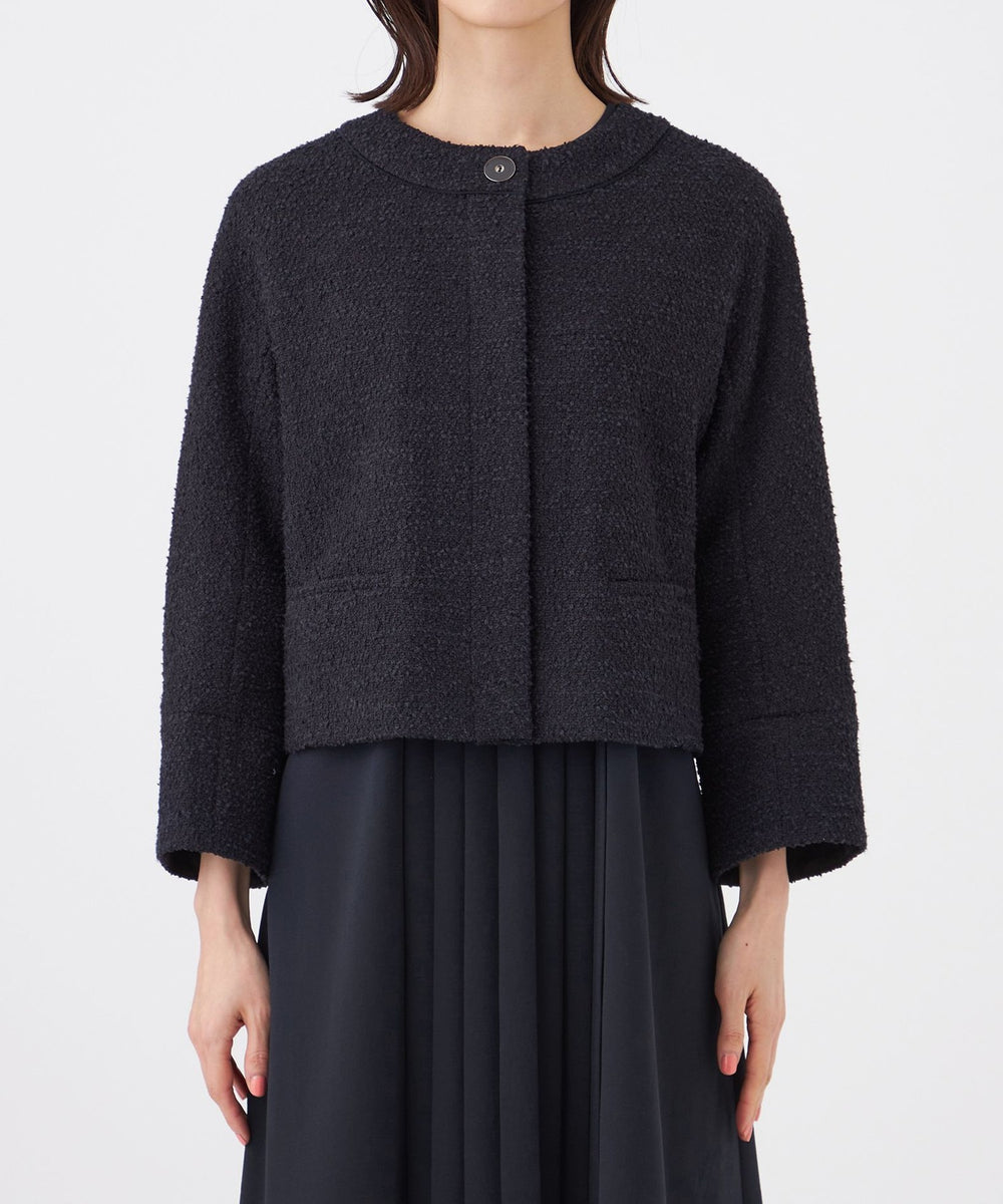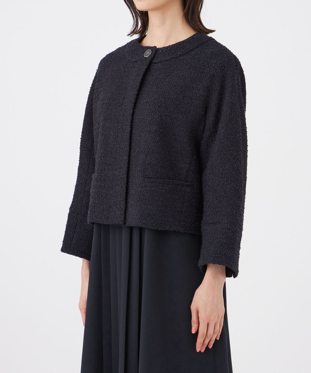 肩に丸みのあるコクーンシルエットのショートジャケットです。
