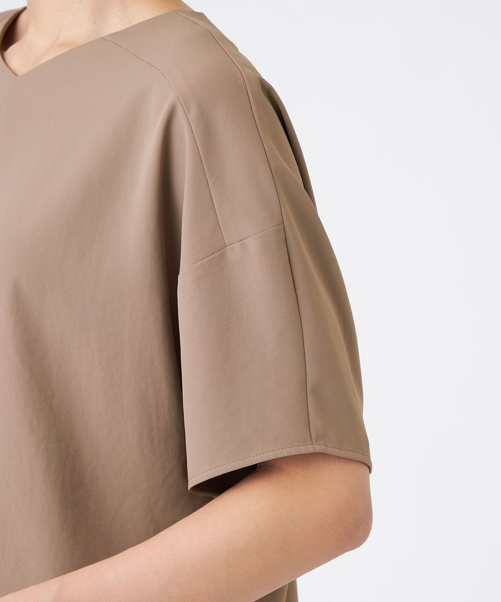 肌離れしやすい構築的なフォルムです。オーバーサイズですが、生地に落ち感があり、きちんと感とリラックス感を兼ね揃えた布帛のブラウスです。同素材のパンツ(U1R16575)とのセットアップがおすすめです。