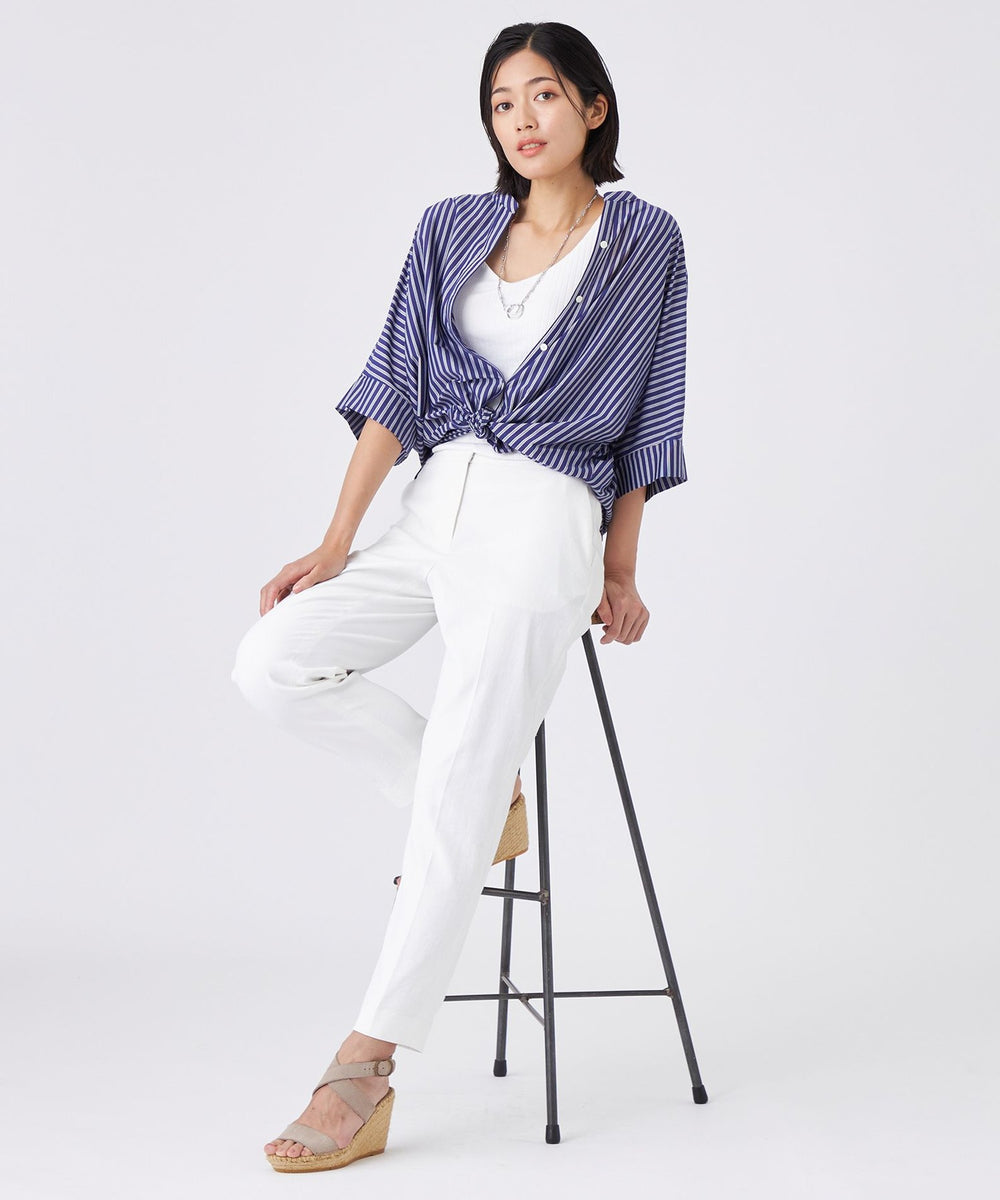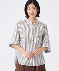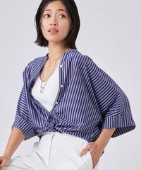 一枚着としても、羽織としても活躍するストライプシャツブラウスです。