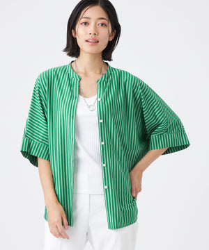 【L】【ウォッシャブル】T/Cストライプ天竺シャツ