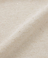 エアリーな膨らみのあるコットン糸に極小のスパンコールとラメ糸を巻き付けた、煌びやかなファンシーニット素材です。控えめながらも上品な輝きを放ち、スパンコールはエレガントな印象を一層引き立てます。