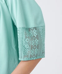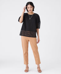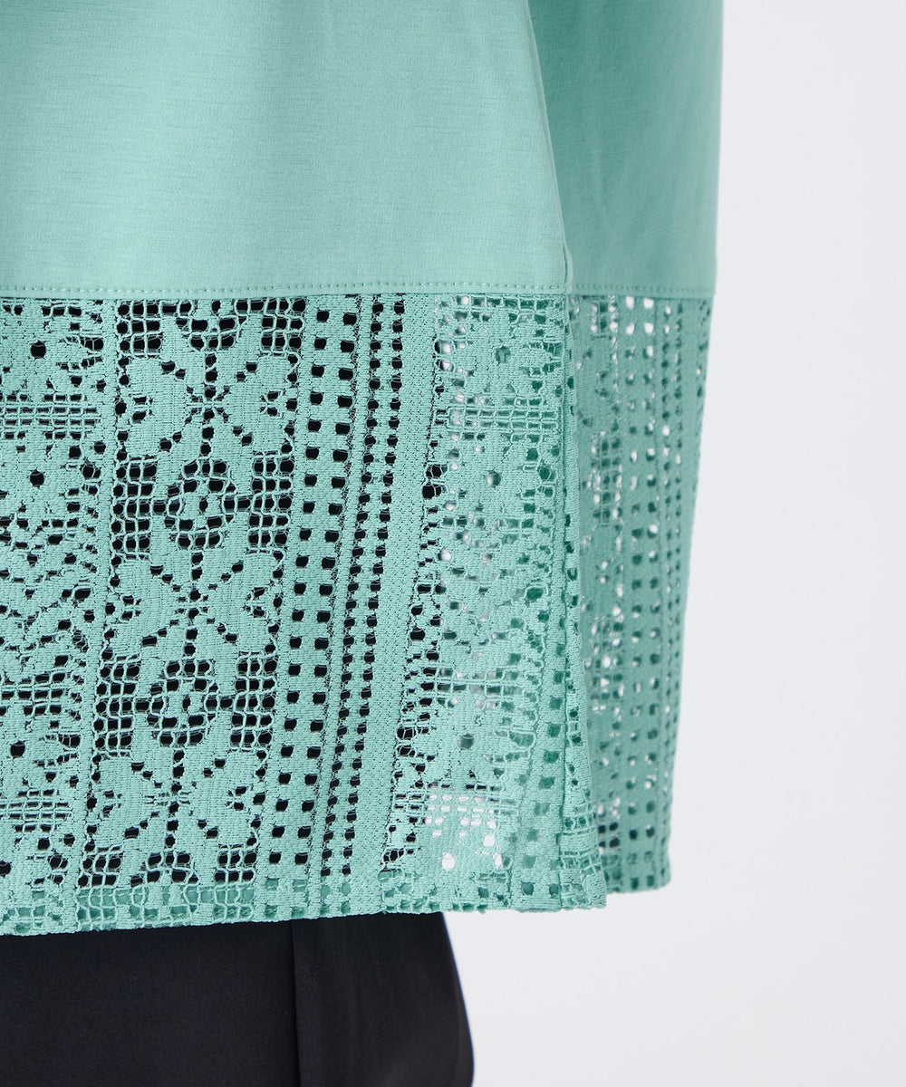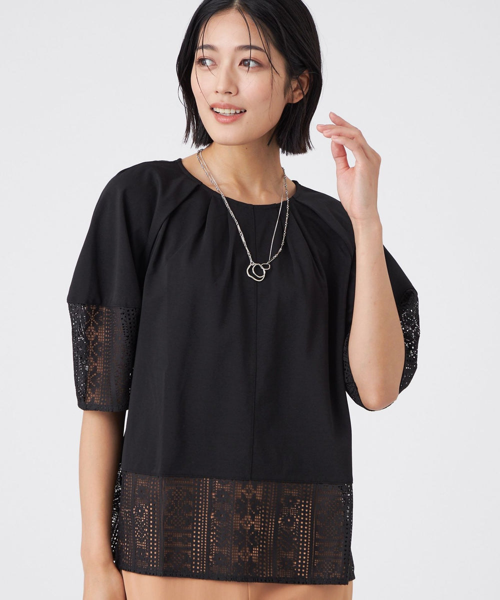 さらっとした素材感で、一枚で着映えるレースコンビのカットソーです。