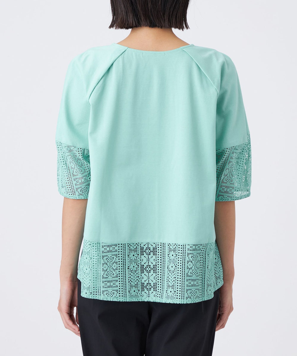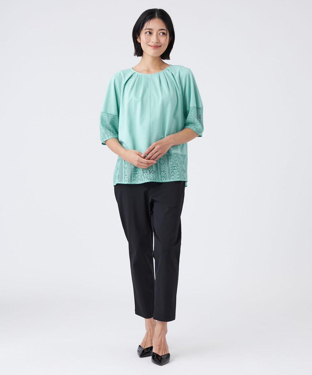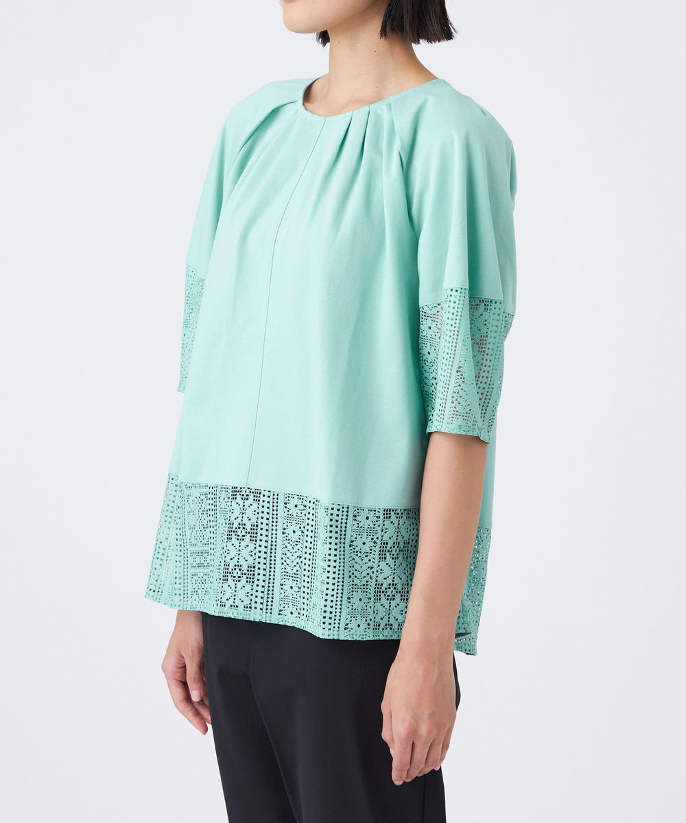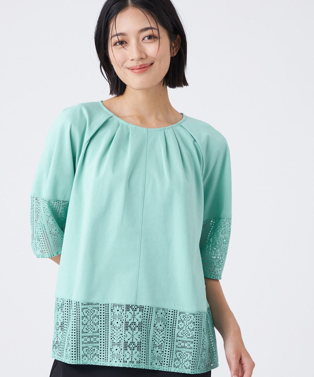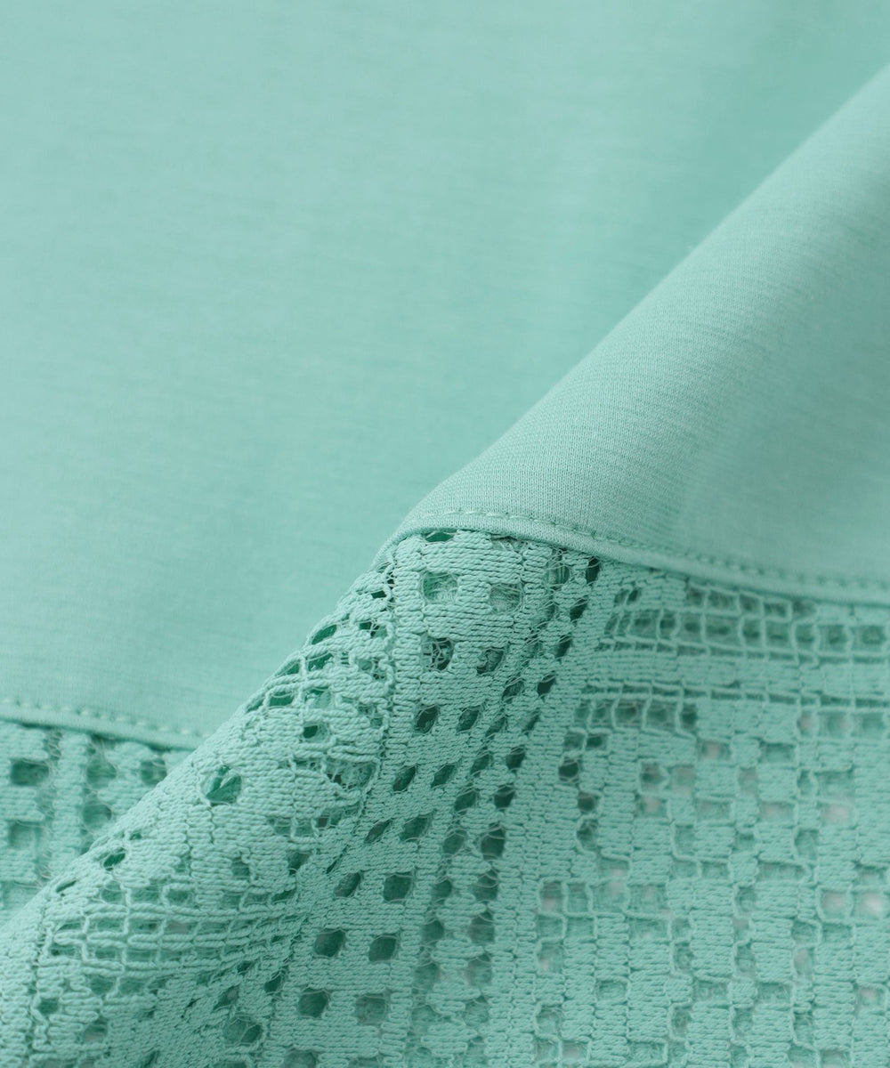【L】【接触冷感・吸水速乾・抗菌防臭・UV・ウォッシャブル】コンパクト40Gポンチ×ラッセルレースカットソー