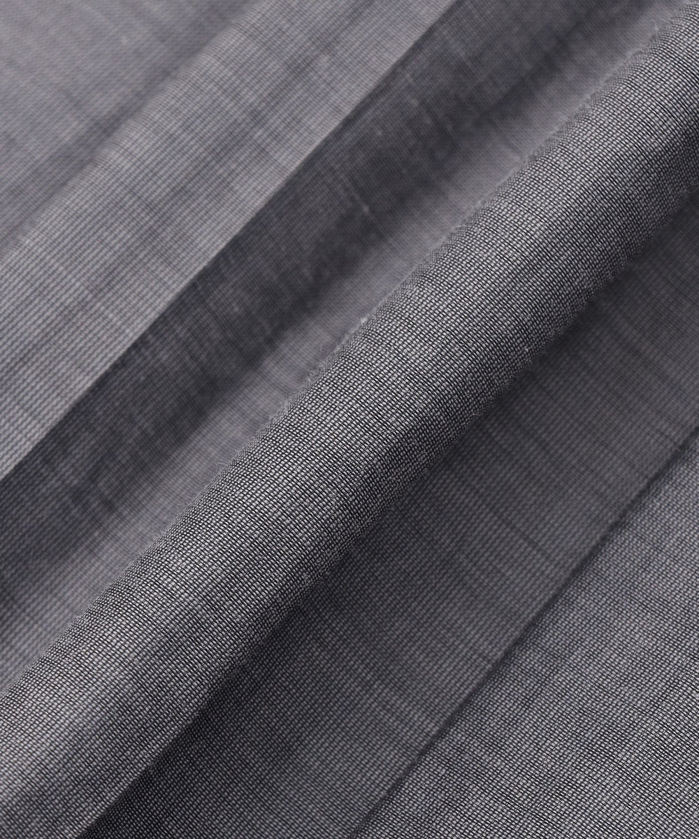 特殊なジャカード織機で作成した綿とナイロンの交織素材です。フラットに織られた生機を後染の加工技術も活用してシャーリング上に詰めており、雰囲気のある仕上がりになっています。
