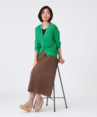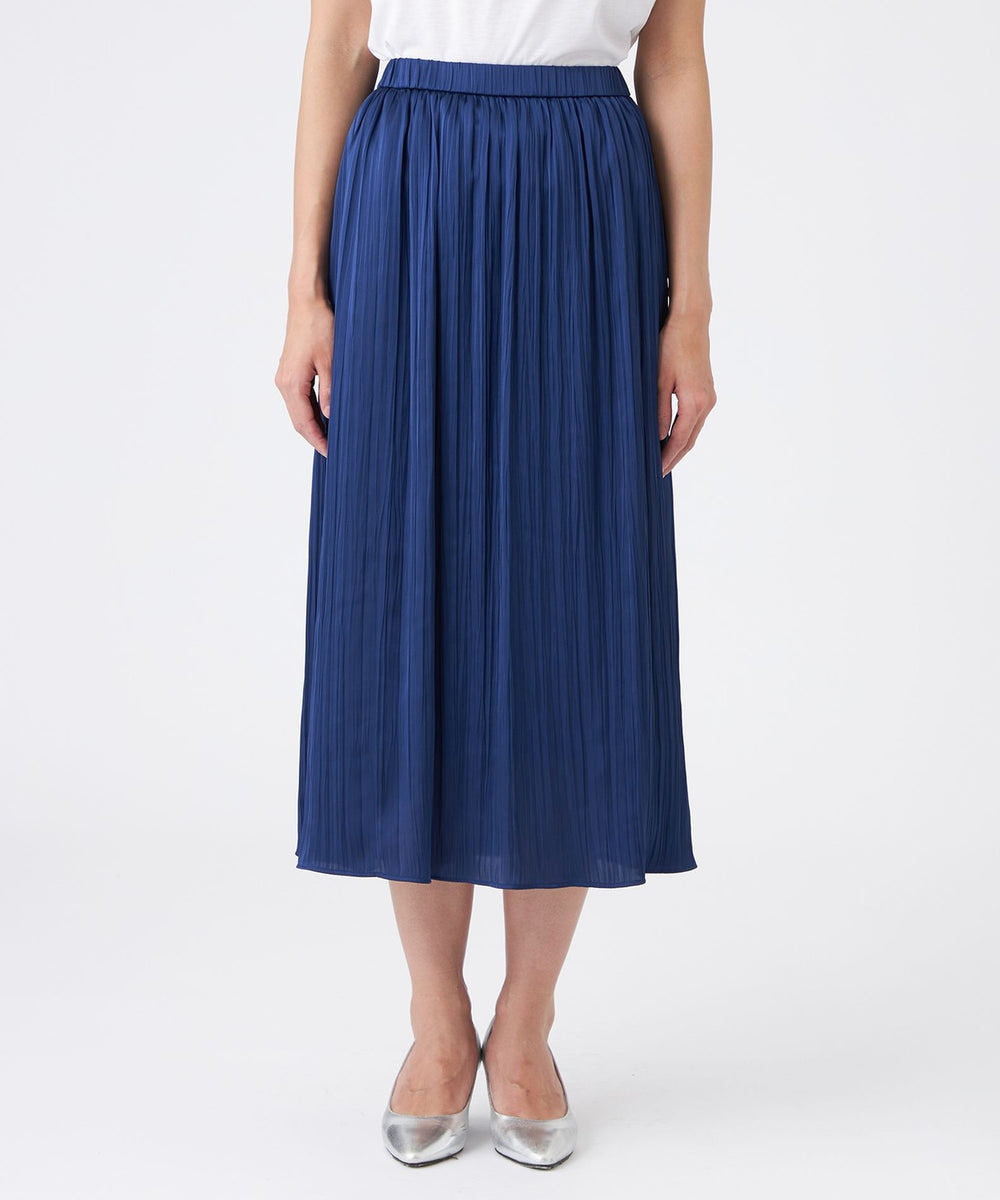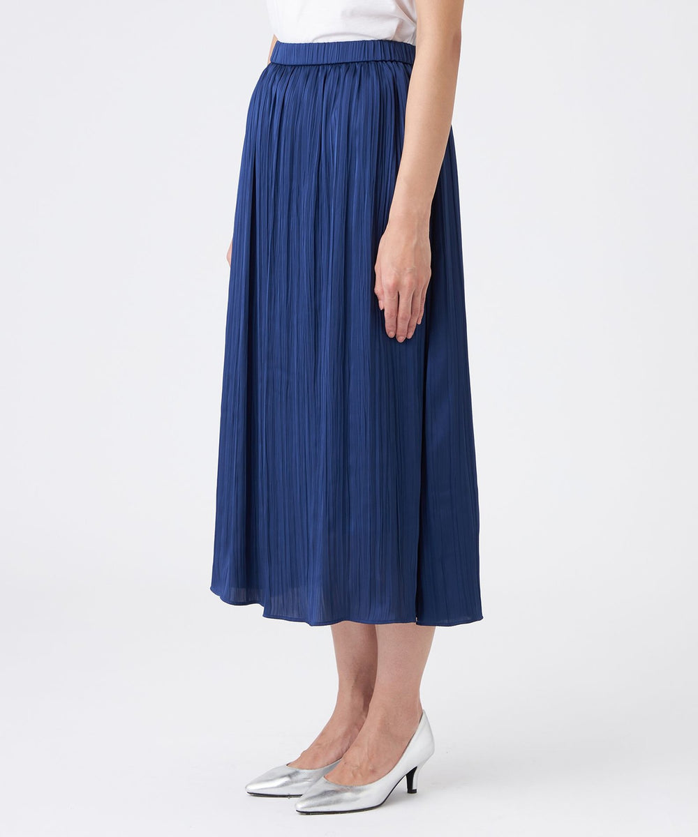 【L】【ウォッシャブル】プリーツ調バックサテンスカート