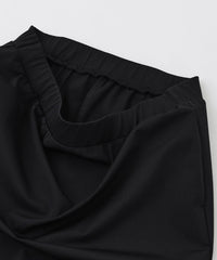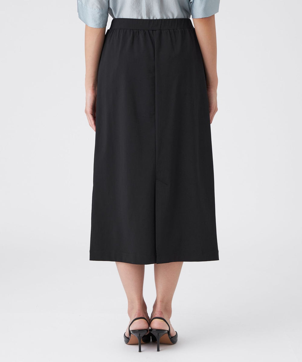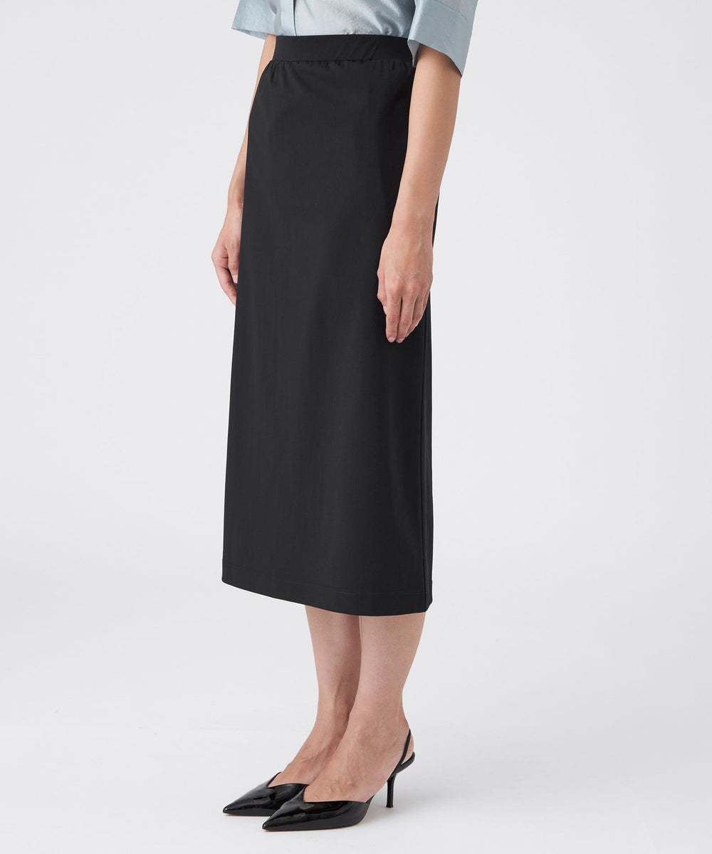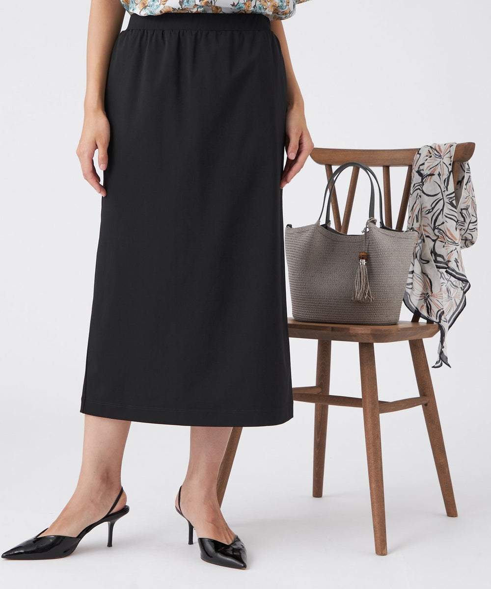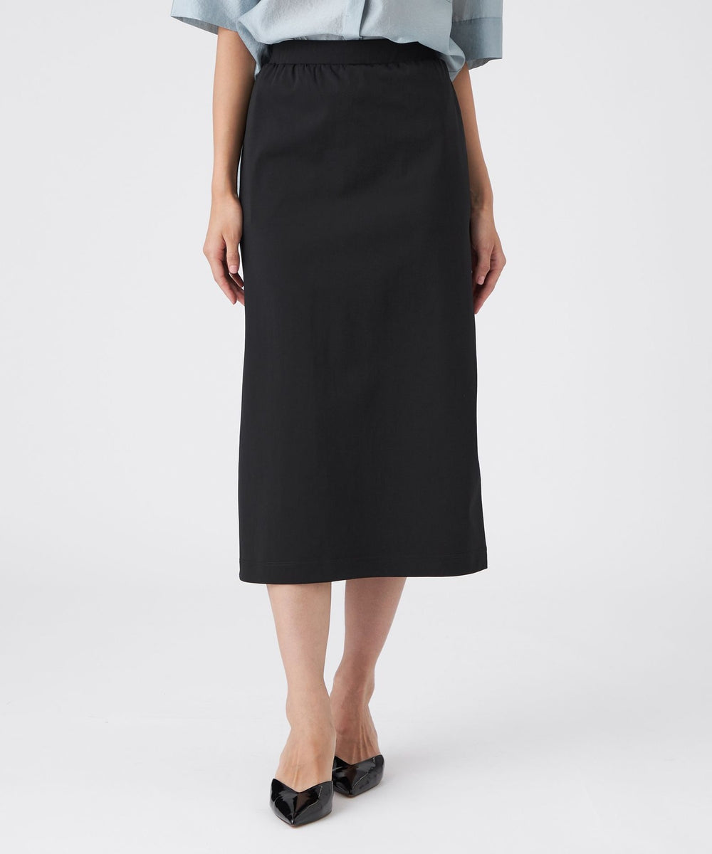 ストレートシルエットが魅力の一着です。伸縮性に優れたトリコット素材を使用しており、快適な着心地と美しいシルエットを両立しています。ウエストは全体にゴムを配した仕様で、着脱もしやすく、デイリーに活躍するアイテムです。
