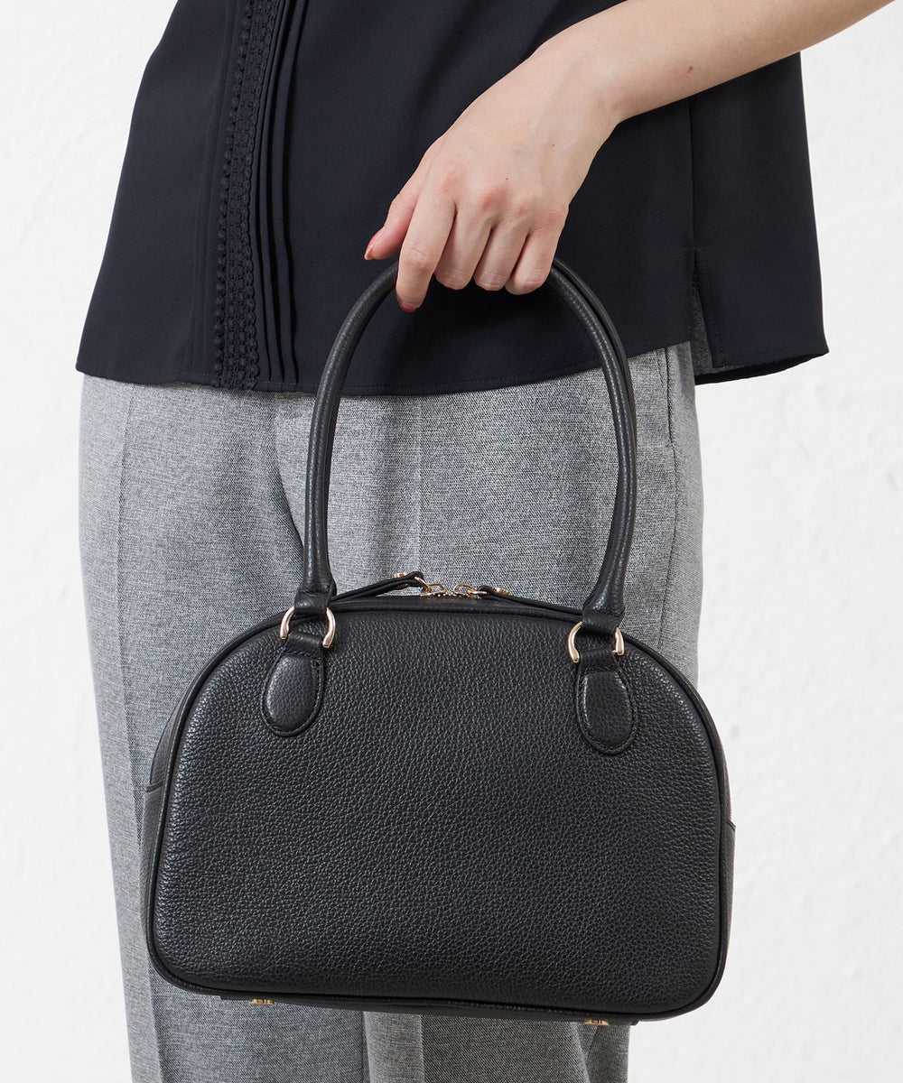 通勤や休日のおでかけなどデイリー使いからオケージョンまでシーンを選ばずオールマイティにお持ちいただけるレザーバッグです。小さめデザインながら見ため以上に、おでかけ時の必需アイテムが収納できる実用的なバッグです。背胴外側にカードや携帯が入るポケットと、内側にもポケットがあり使用感がとてもよいバッグです。