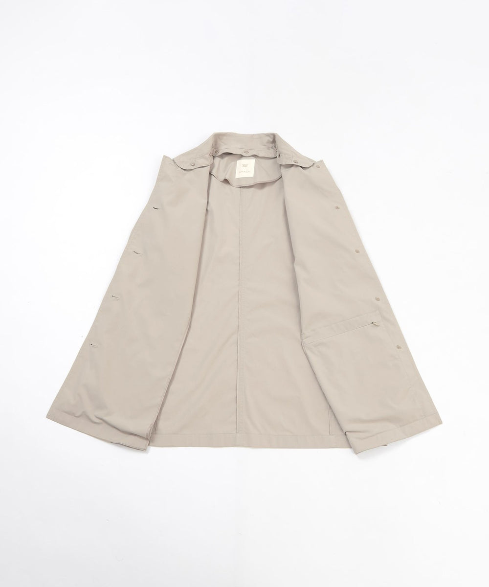 内ポケットにフードが収納できる仕様になっており、ステンカラー・フード付き・ノーカラーの3WAYで着用可能なスプリングコートです。