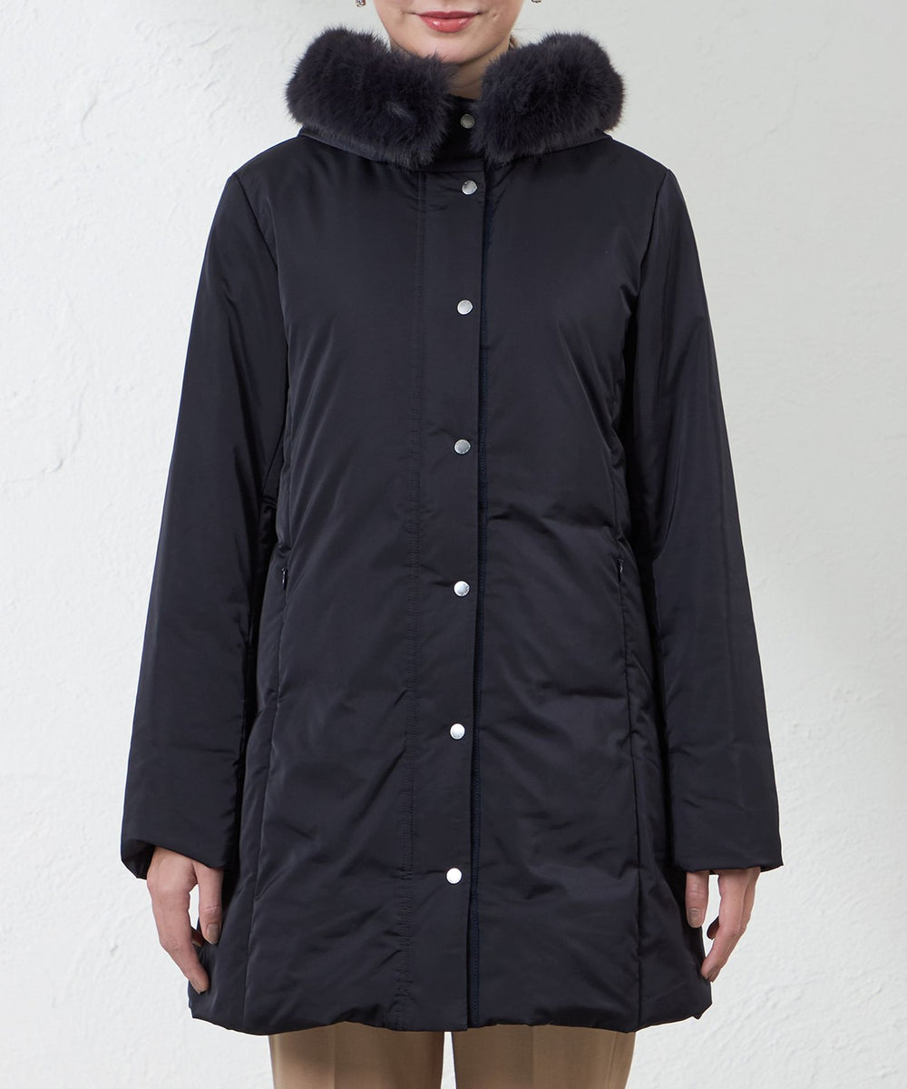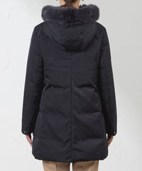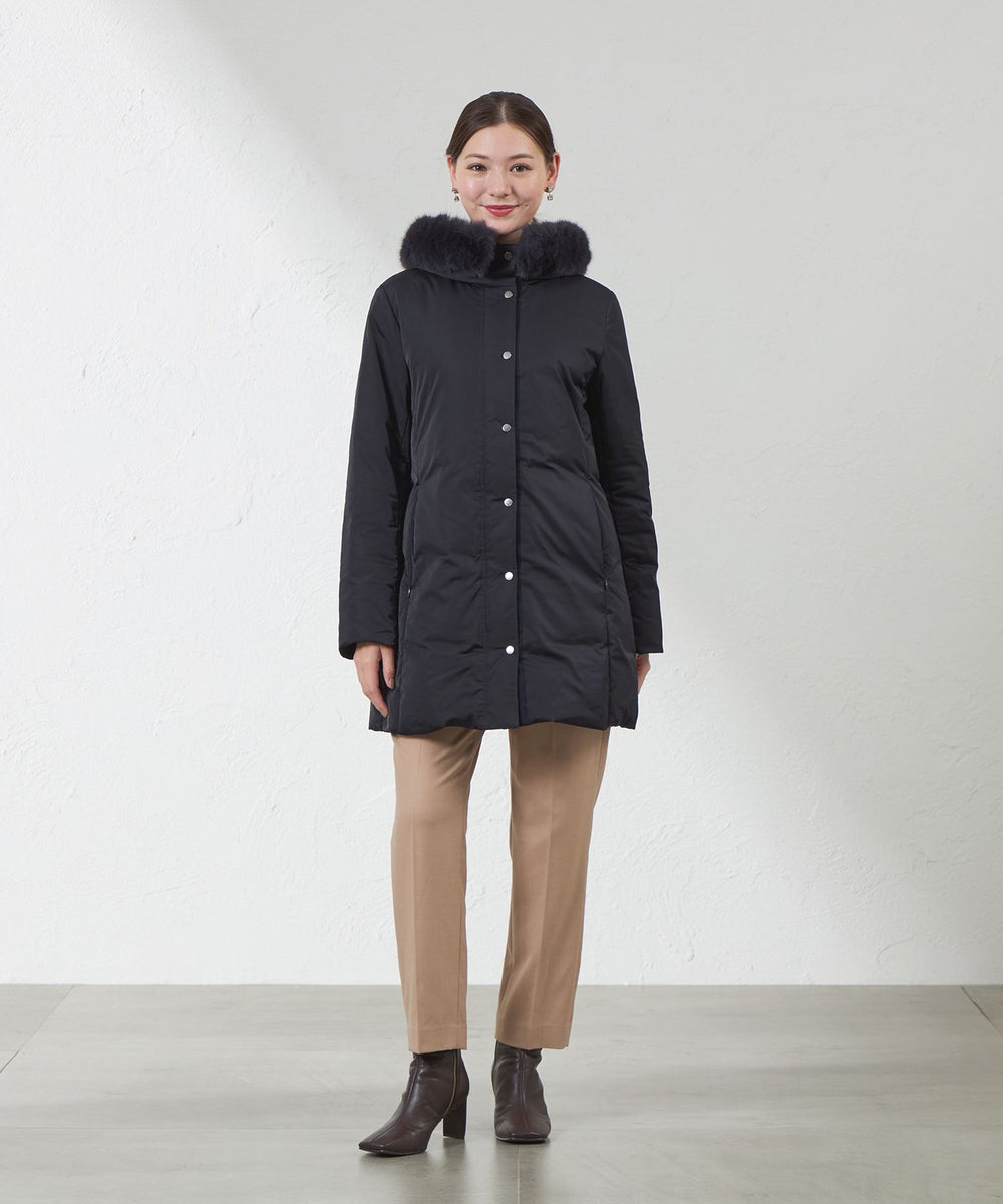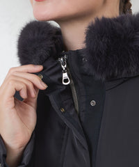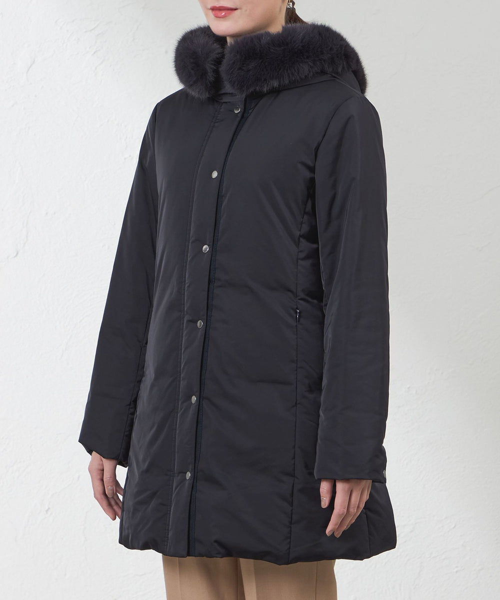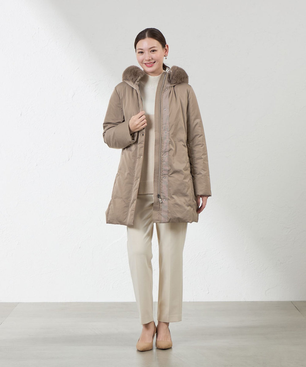 フードにはフォックス調のエコファーが付いており、取り外しも可能になっております。