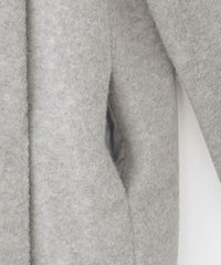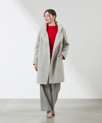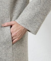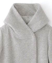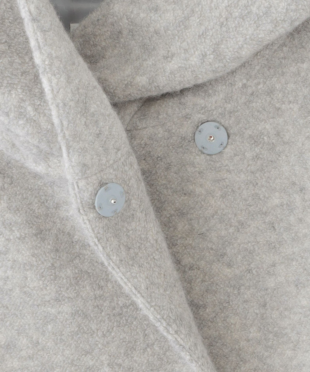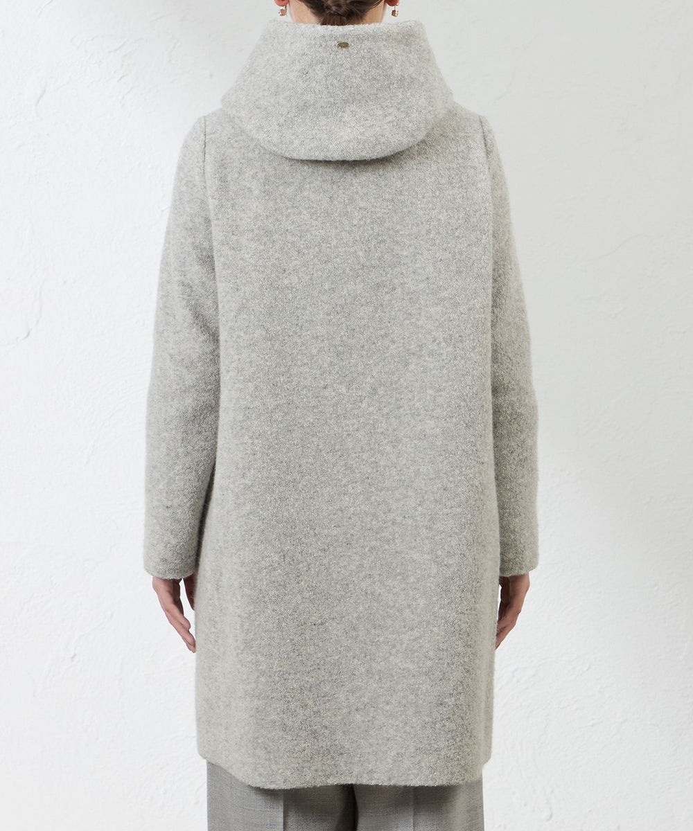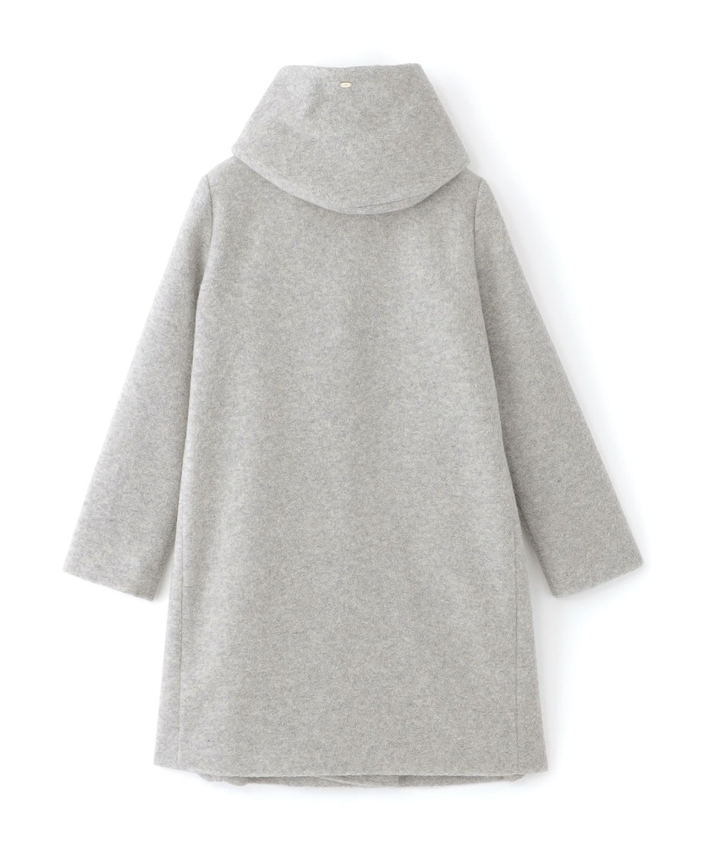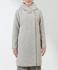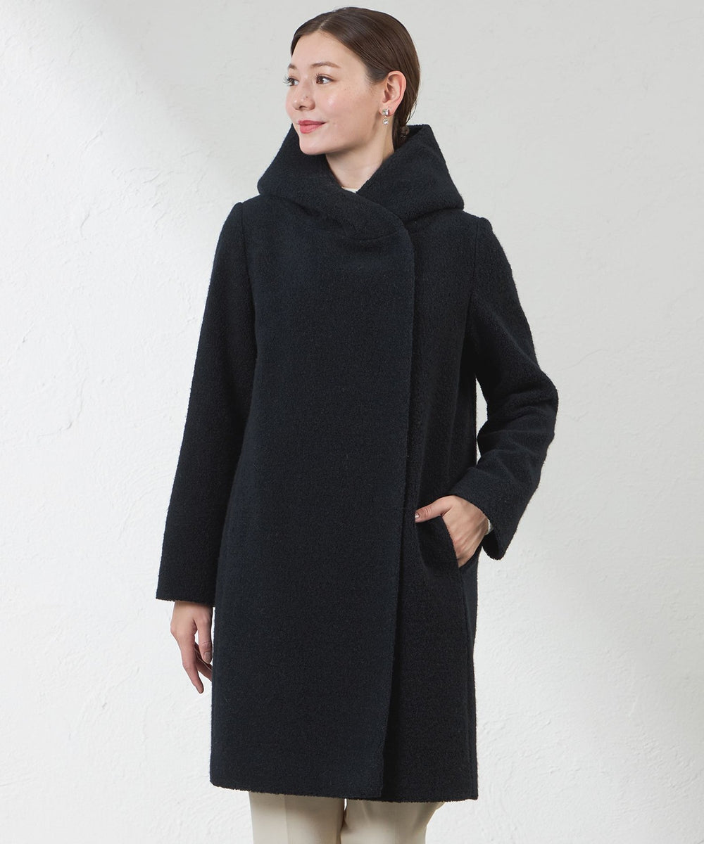 首元まで暖かいフードがついたダブルブレストのゆったりとしたラインは体を柔らかく包み込んでくれる贅沢な着心地が特徴。