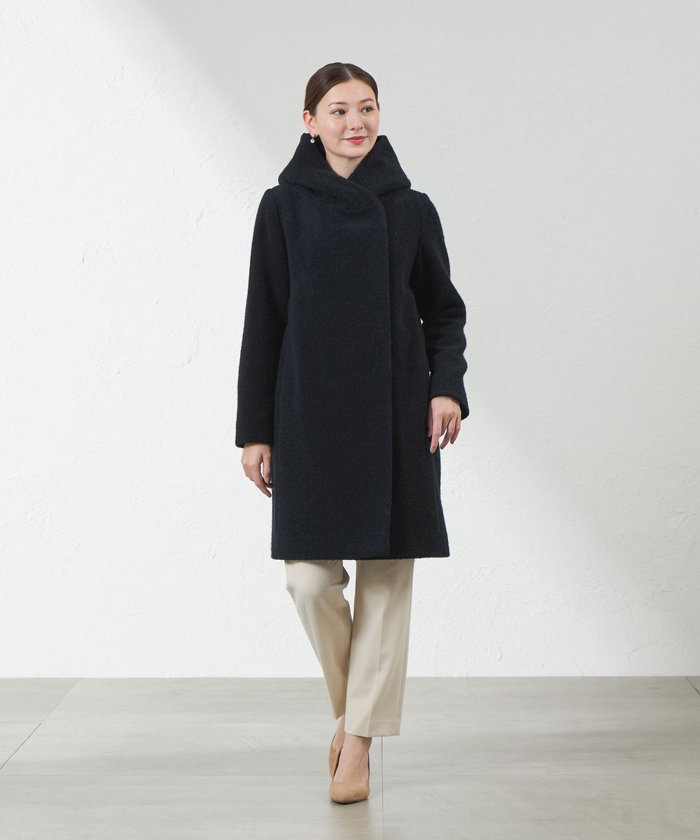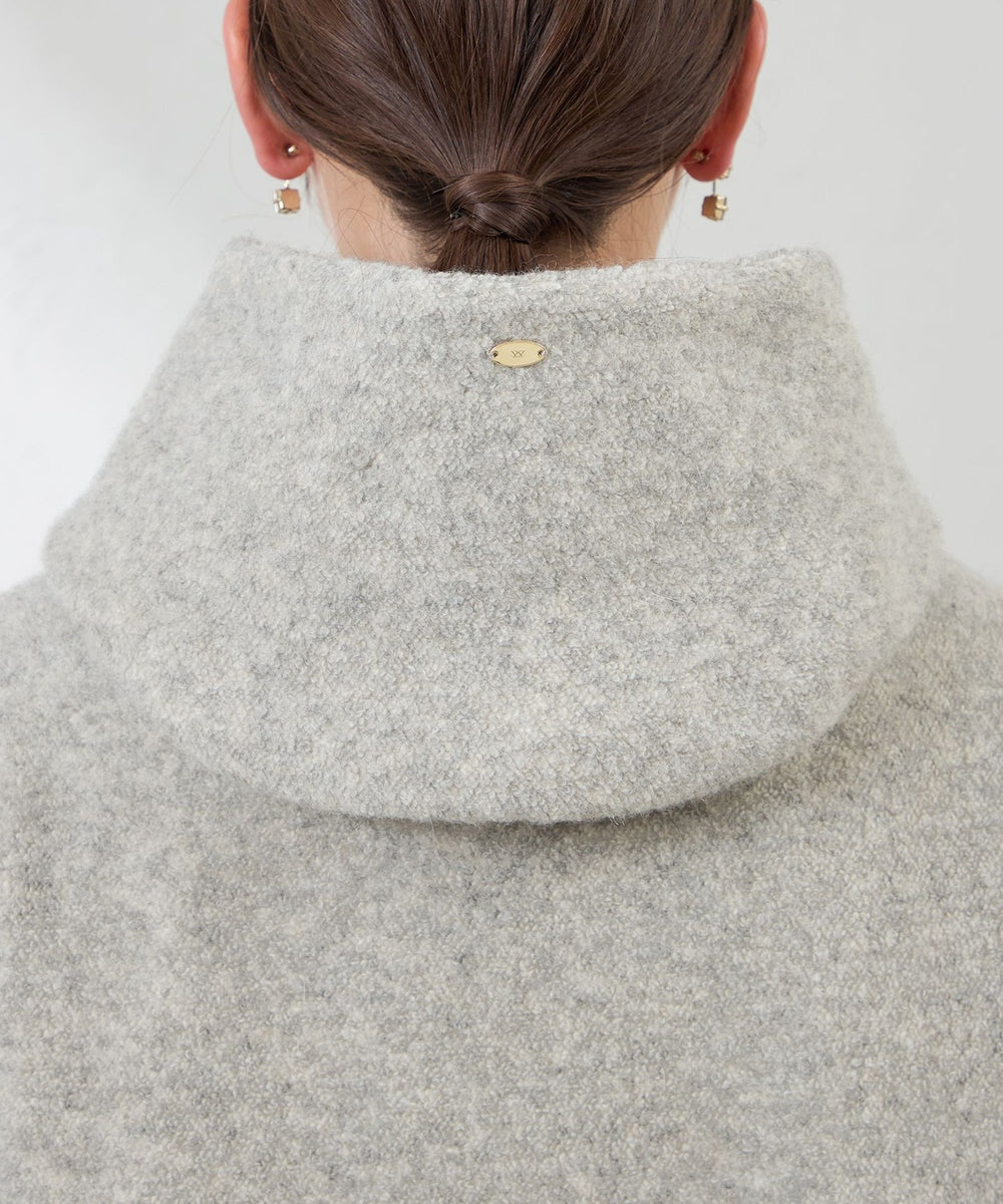 フードはくるくると外側にたたむとショールカラーにもなる2WAYデザインで、より上品な雰囲気でもお召しいただけます。