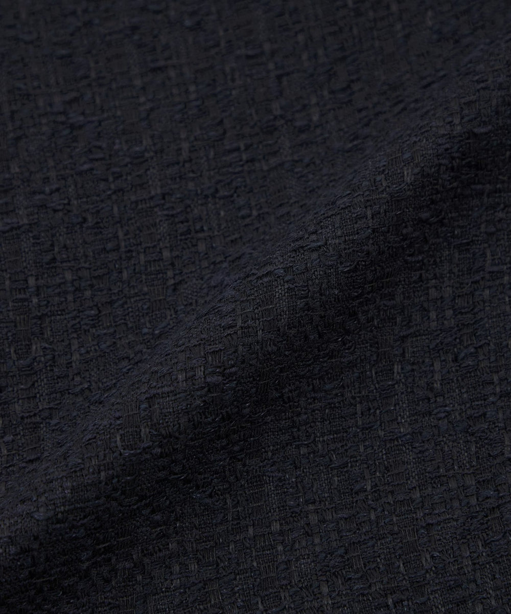 山北毛織さまと作ったオリジナルのツイードです。こちらはネイビーと黒のかけ合わせで、オケージョンに必須なネイビーを作り上げました。ファンシーすぎず、つまらなくない、絶妙なオリジナリティを感じるツイードに仕上がっています。