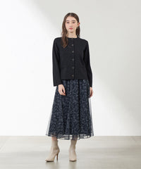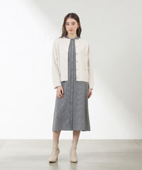ややAラインの上品なシルエットに、フェイクポケットのディテール、ガーターと飾り編みを組み合わせた付属使い、そして品のあるボタンがアクセントに。