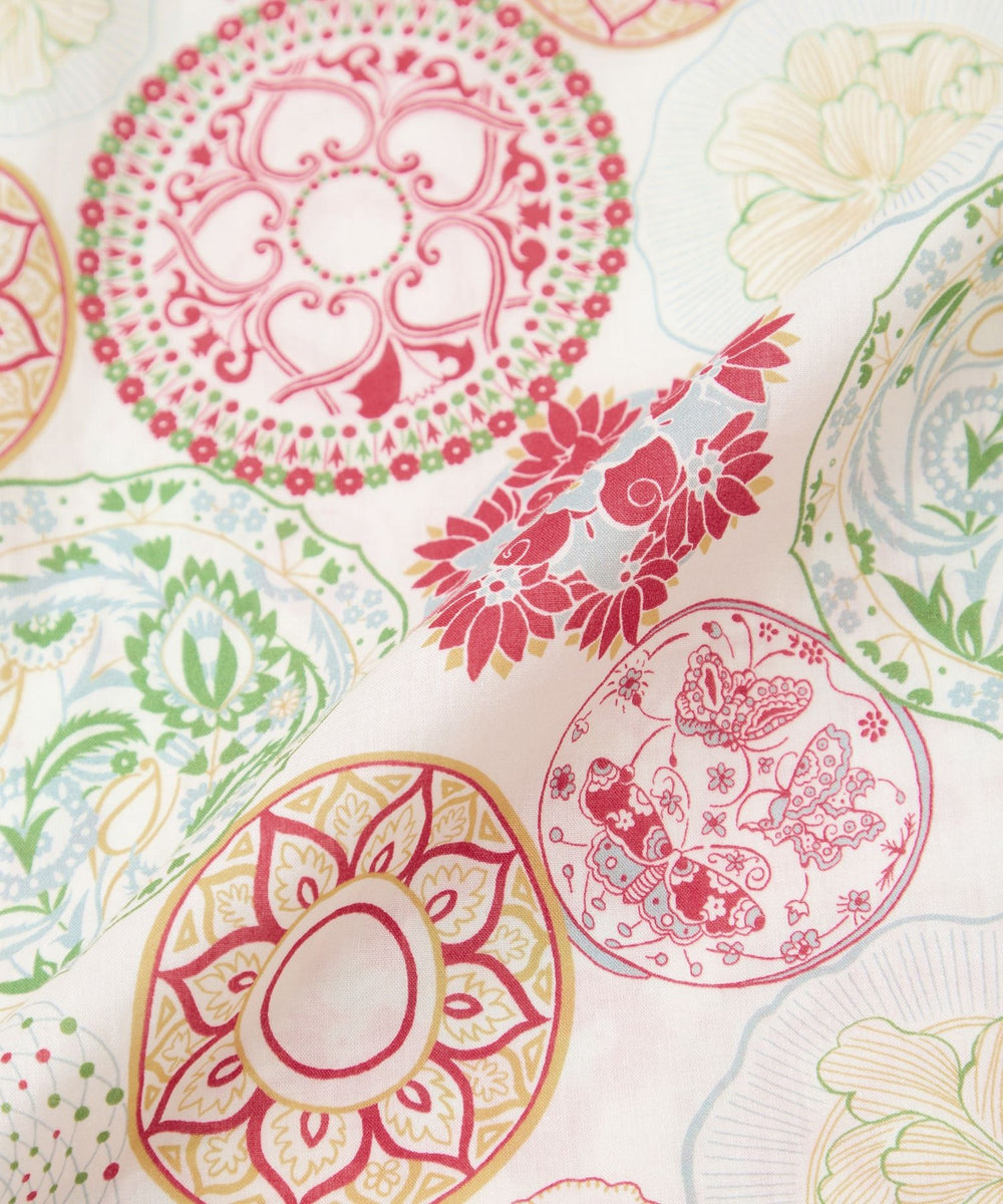 素材は「タナローン」と呼ばれる、非常に細い糸で編まれた綿を使用したコットン生地で、リバティプリントを代表する生地素材です。