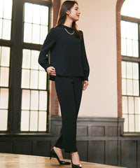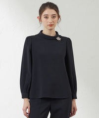 丸みのある衿が上品なロールネックブラウス。オケ―ジョンシーンできちんと感を演出してくれます。同素材のボトムスとのセットアップコーディネイトがお勧めです。