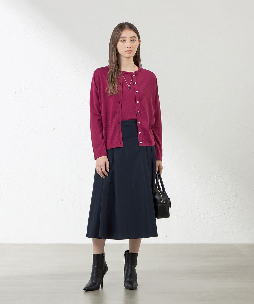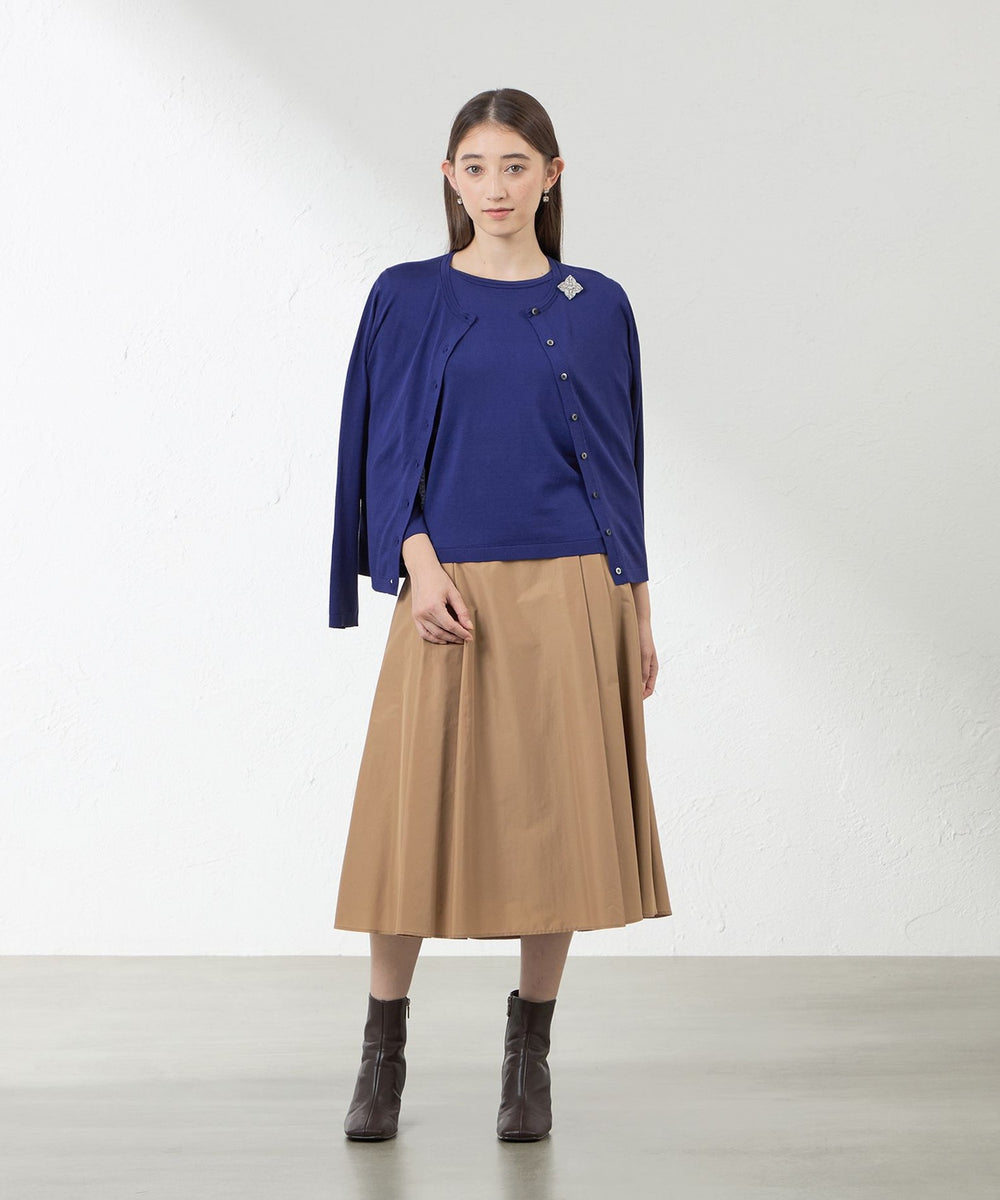 シルクの上品な光沢感とコットンの柔らかい肌触りが特長です。20周年ということで過去のアンサンブルを参考に例年よりもシルク混率をUPさせ、AMACAらしい上品な光沢のあるシルク混のアンサンブルに仕上げました。