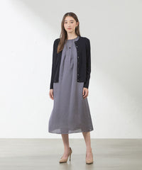 襟にピンタックが入っており、ベーシックな中にも華やかなポイントをプラスしました。少しウエストを絞っているのですっきり見えも叶います。