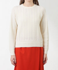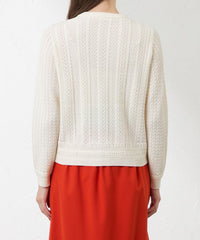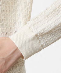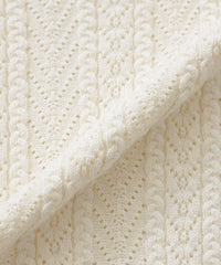 身頃は柄をヨーク風に切り替えているのがポイント。繊細な編み柄が上品なコートインで映える1枚です。