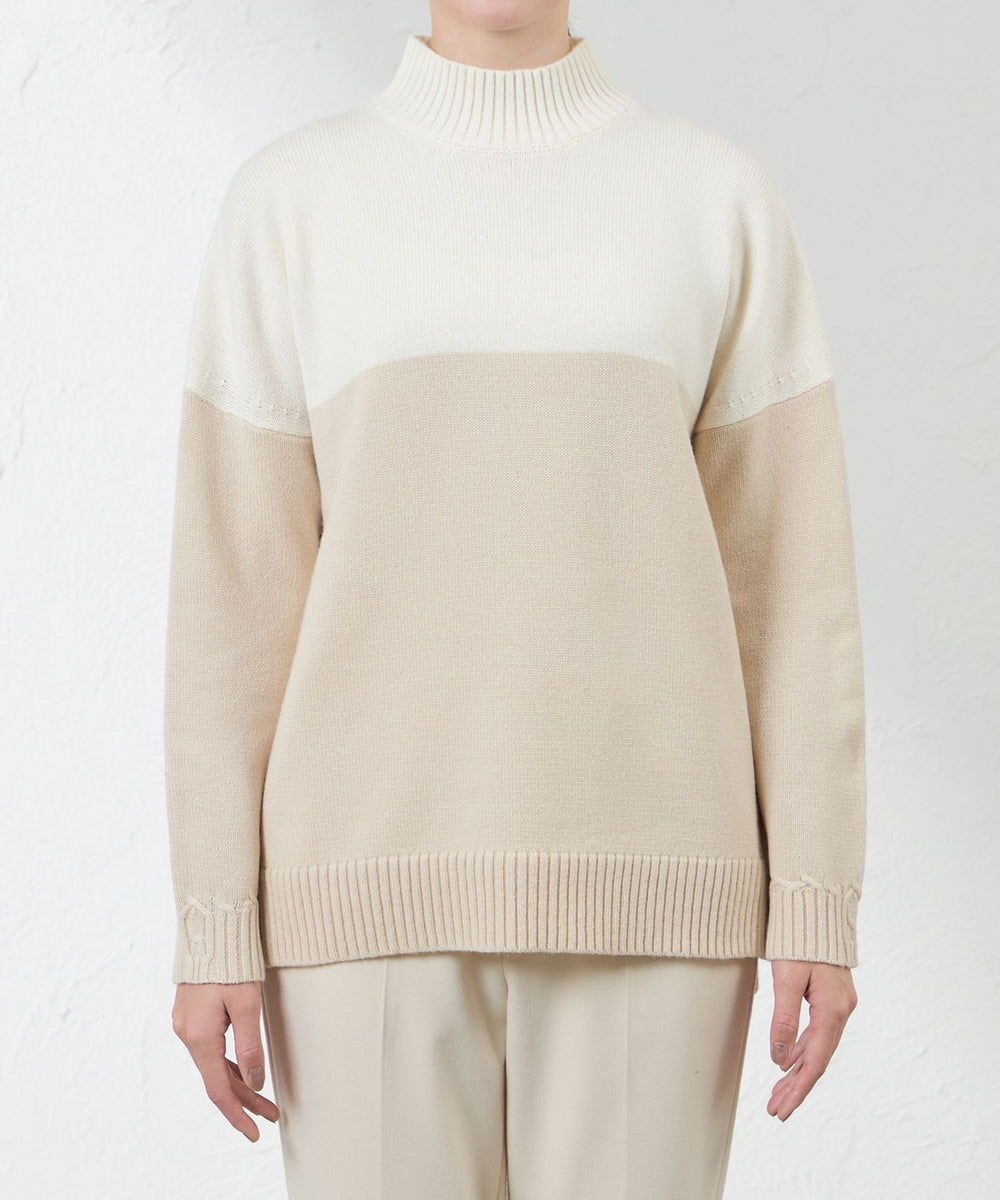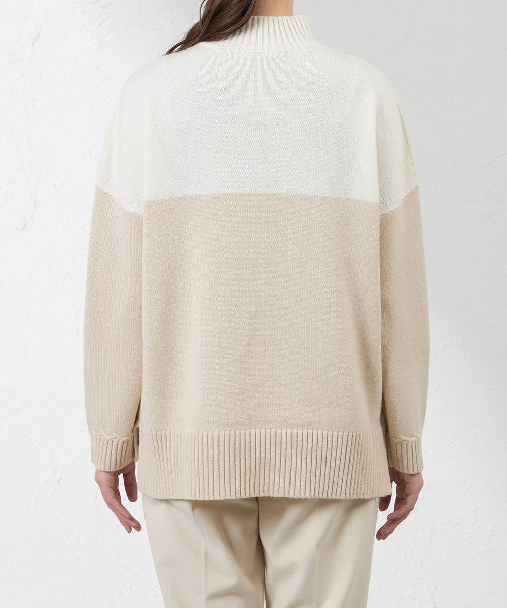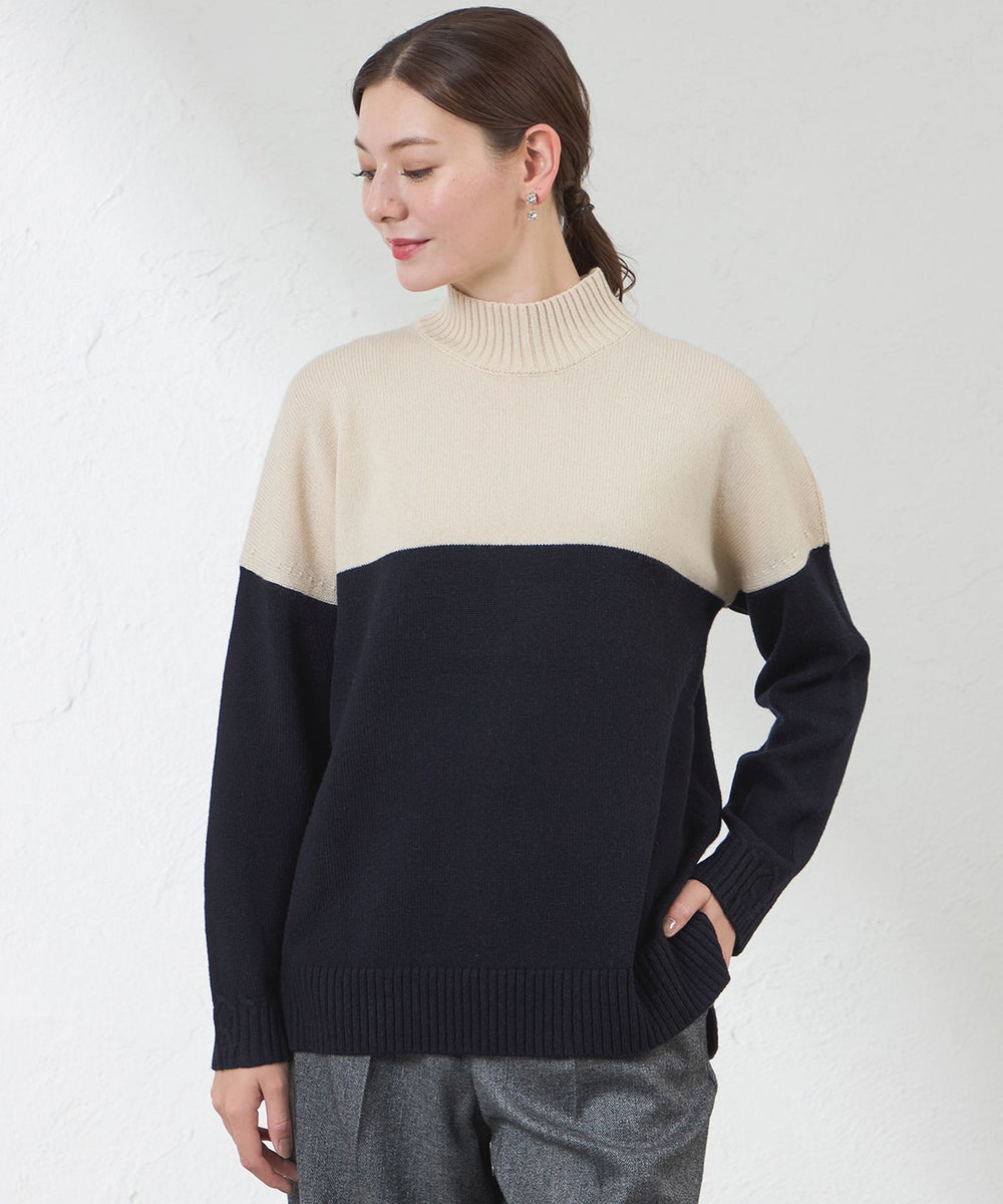 ゆったりシルエットで着心地が良いマルチウールニット