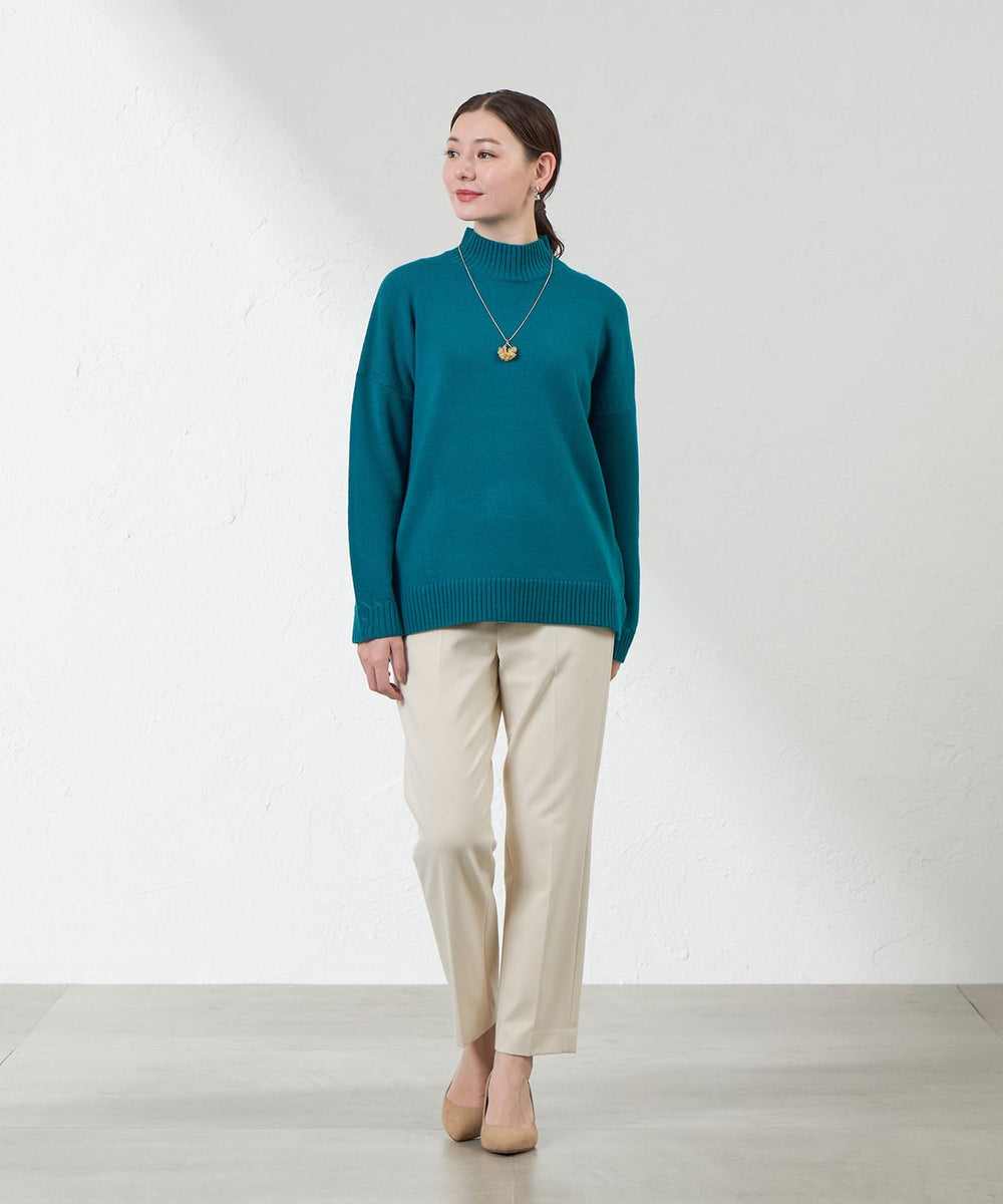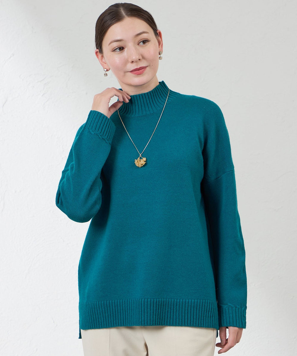 ゆとりのあるサイズ感のハイネックのプルオーバー。ゆったりと着用できるのにすっきり見えするこだわりのシルエットがポイントです。