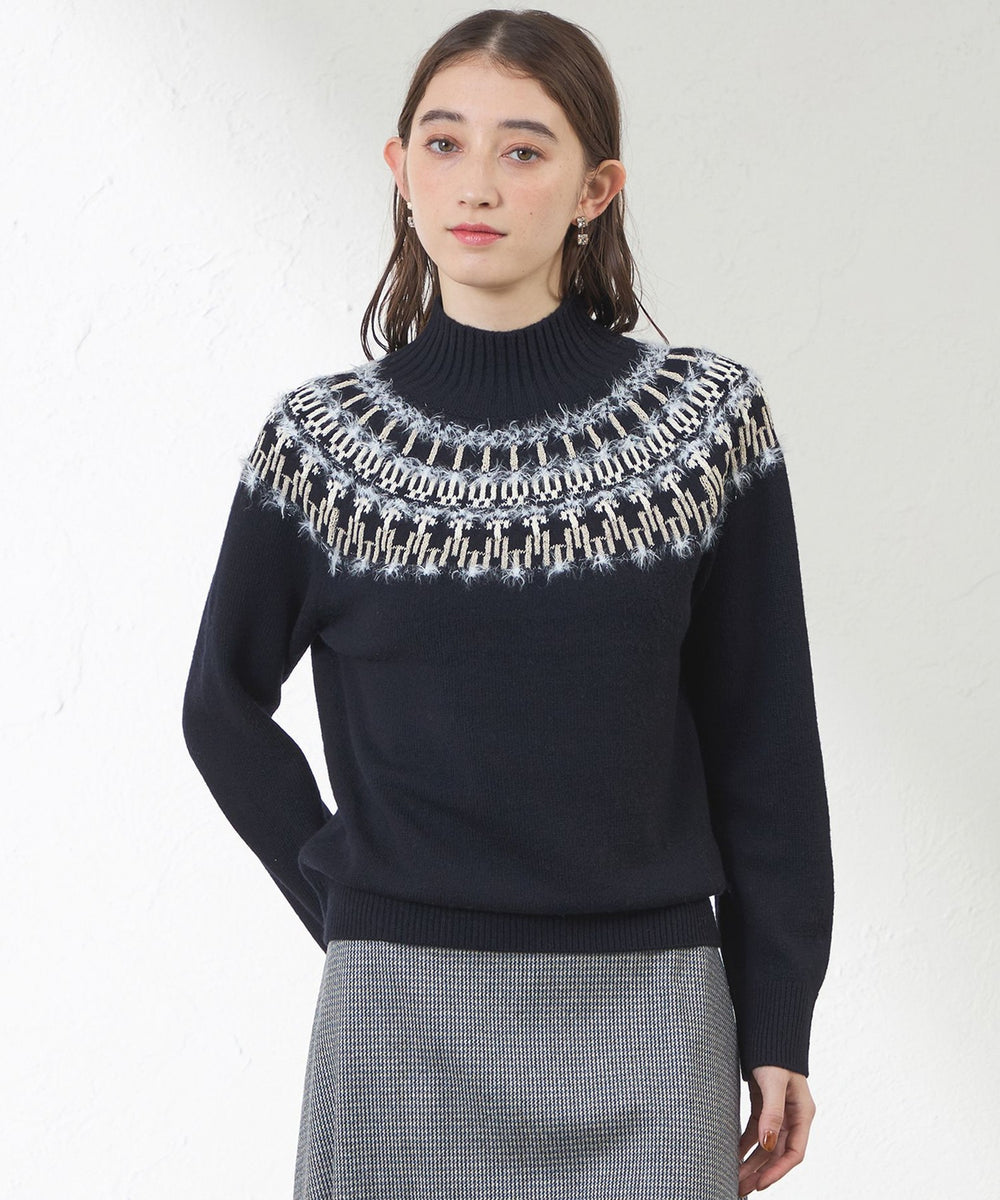 立体ジャカードが映えるニットプルオーバー