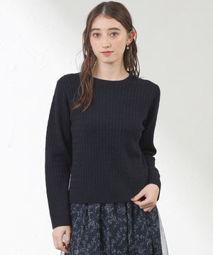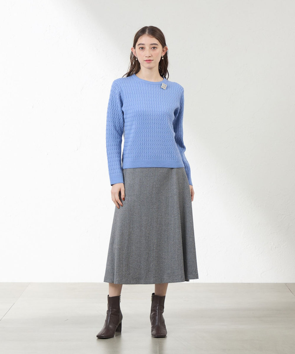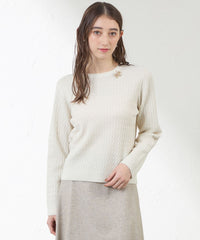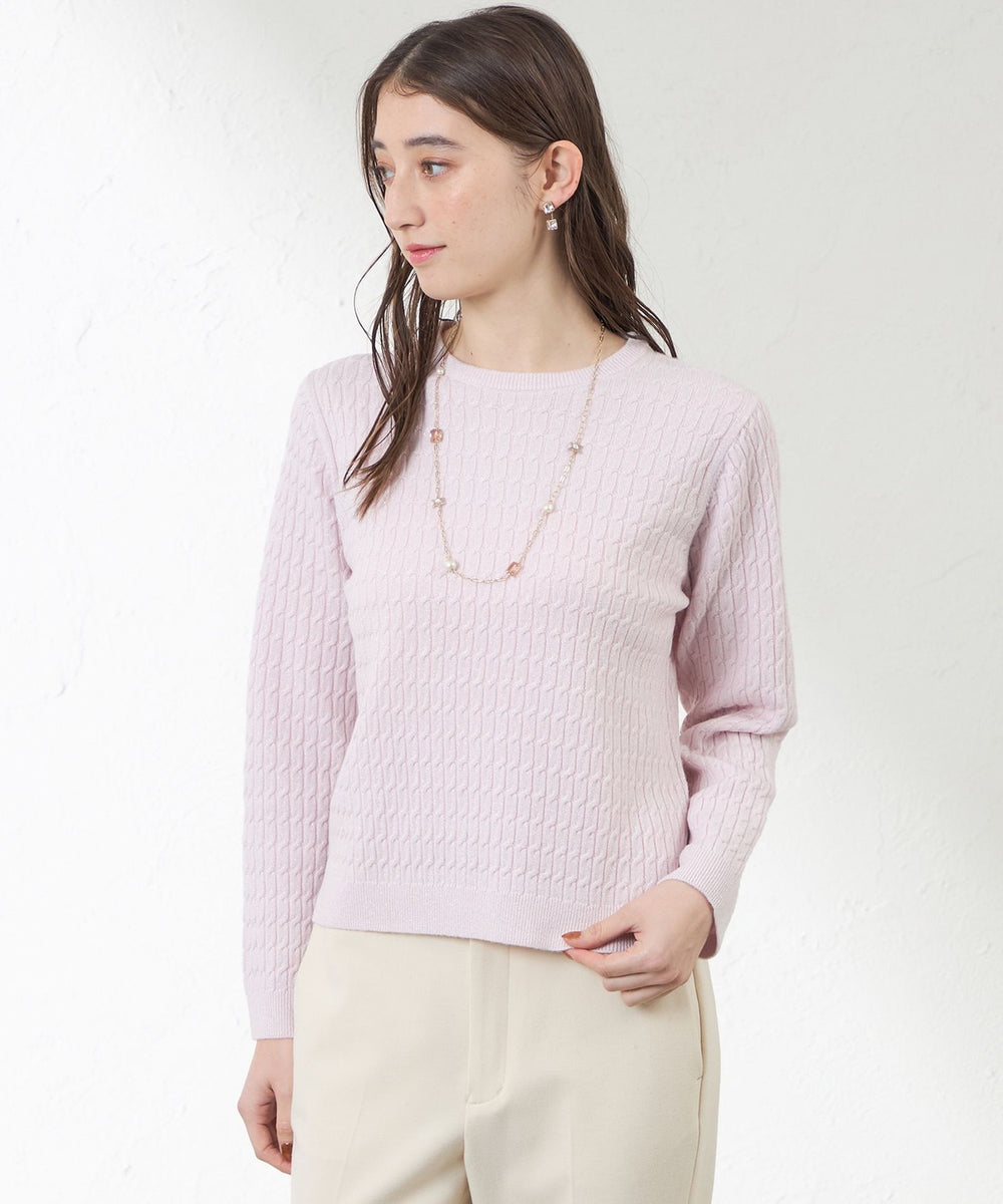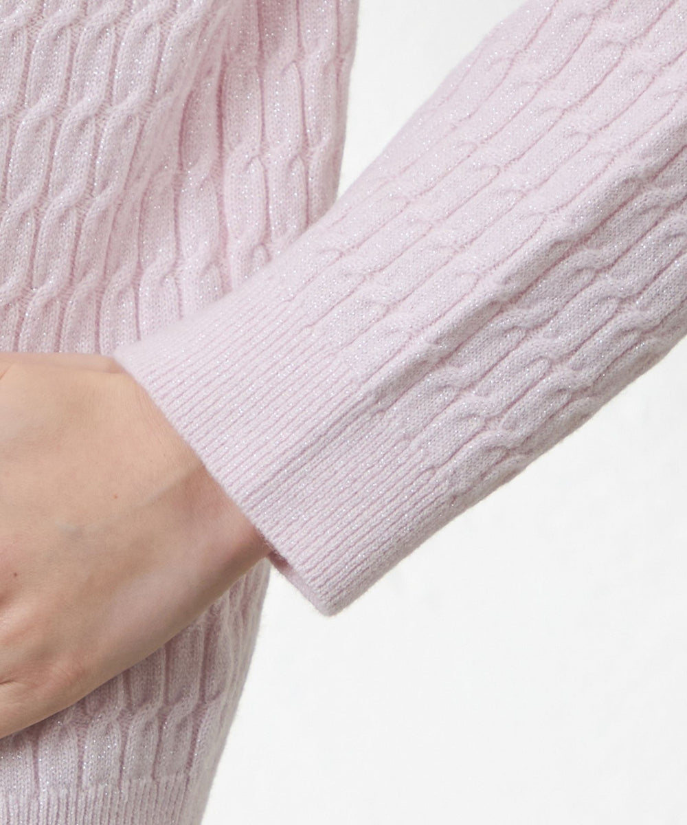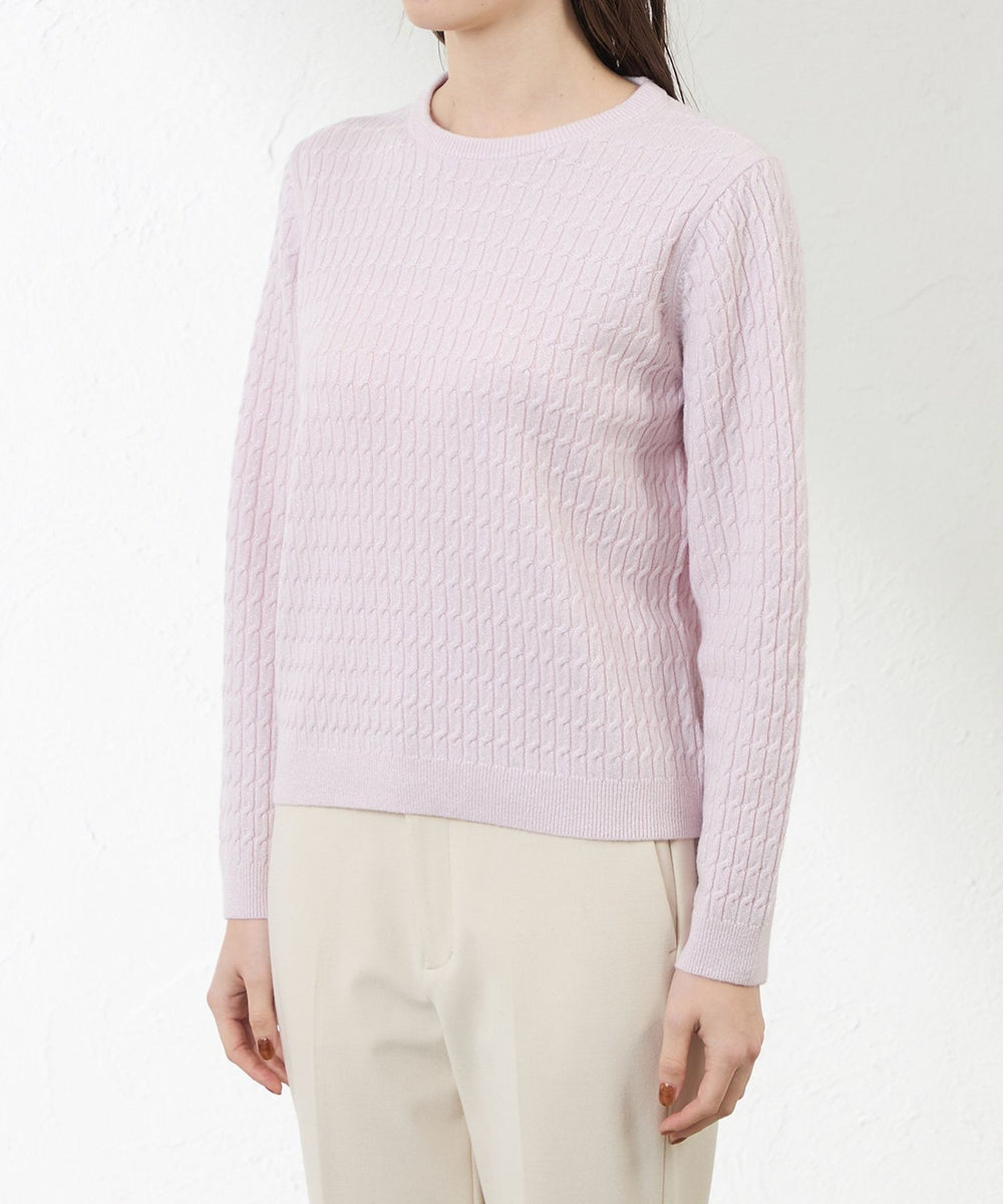 やわらかケーブル×ほのかなラメのクルーネックニット