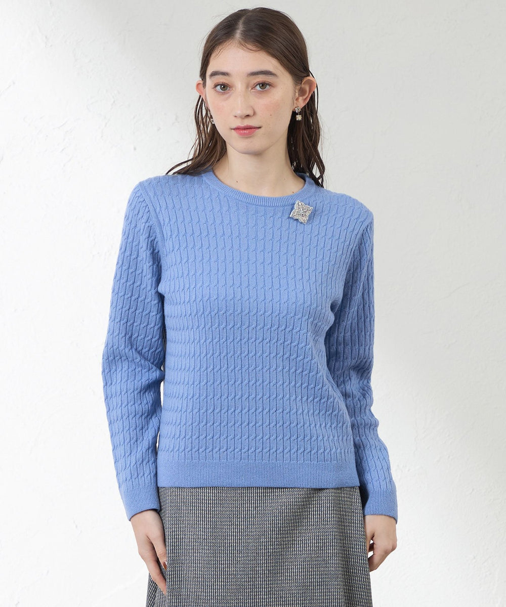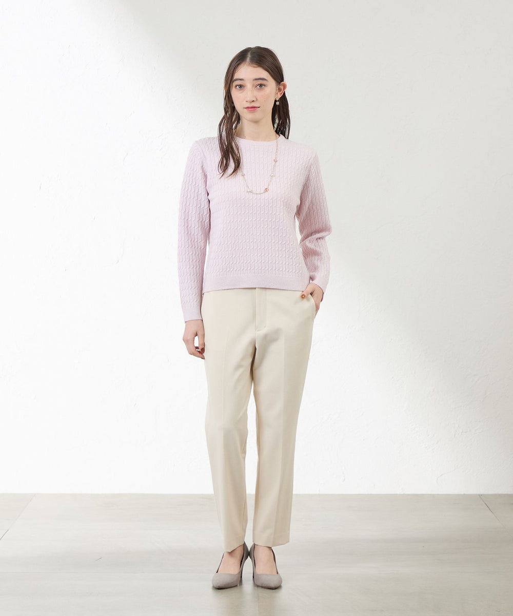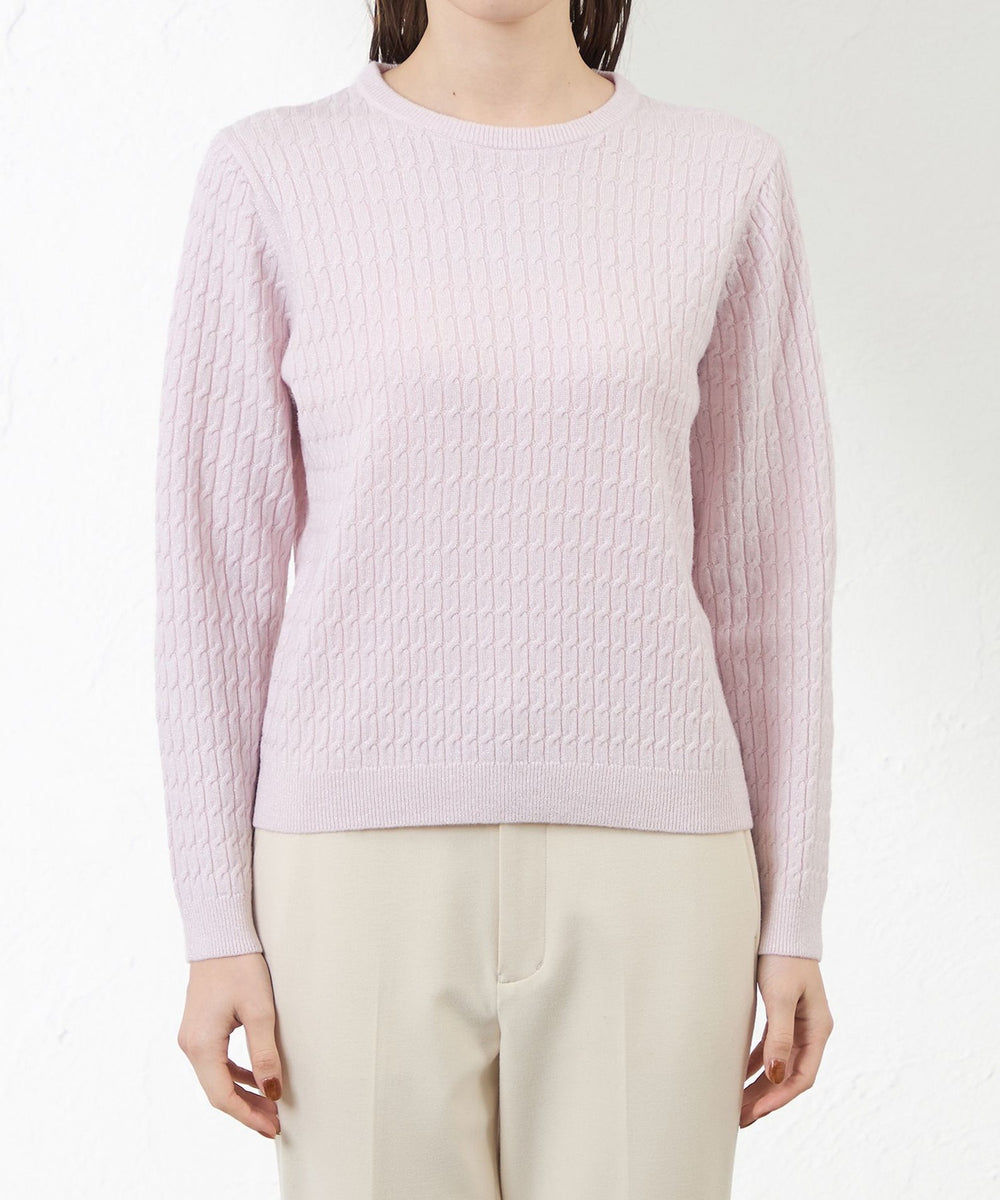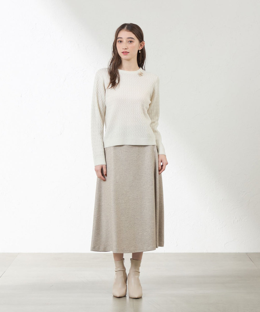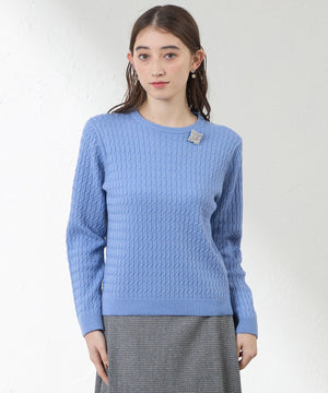 やわらかケーブル×ほのかなラメのクルーネックニット