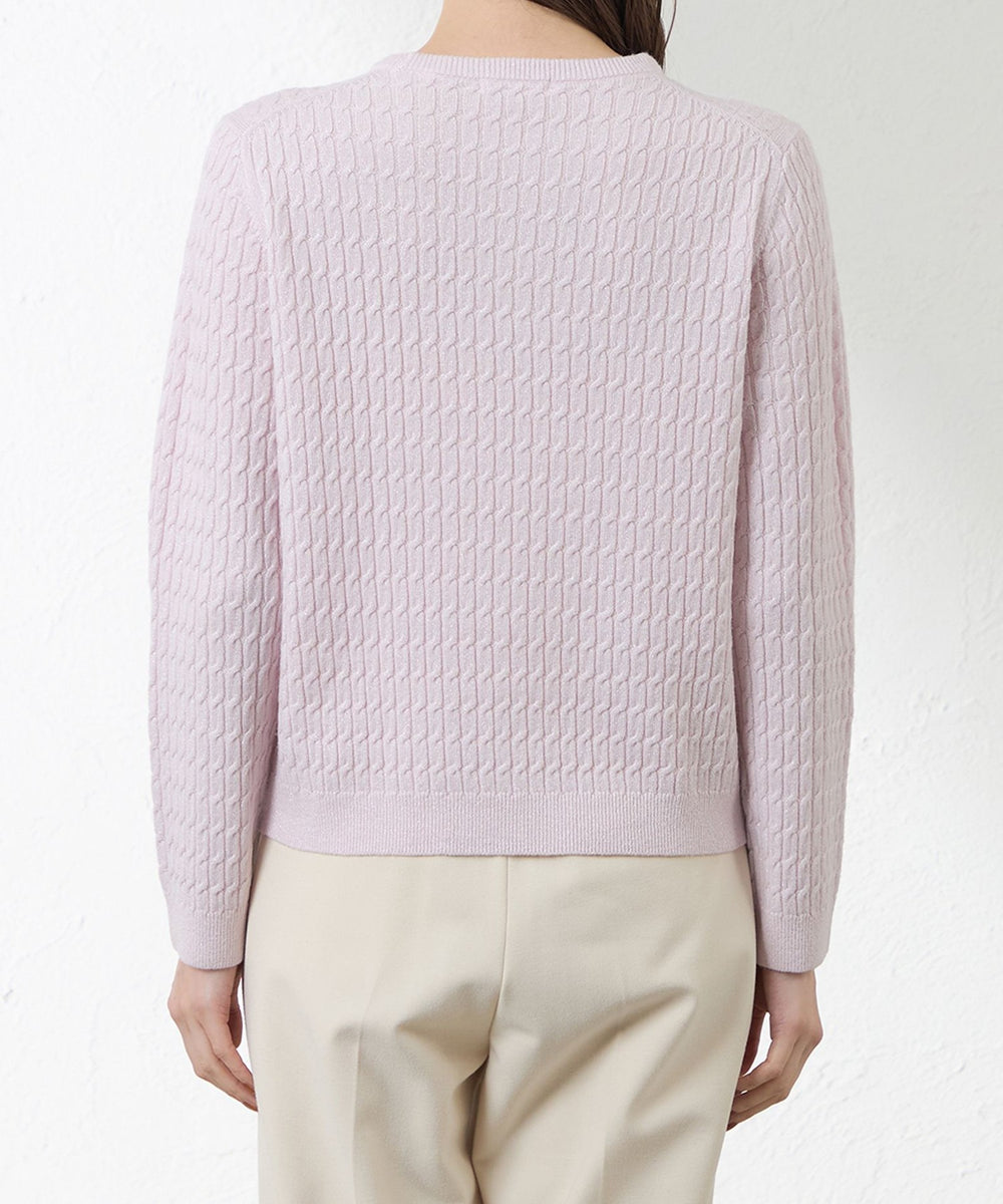小さめのケーブル柄・ラメ入りなので繊細な光沢感があり、カジュアルなイメージのケーブルニットにAMACAらしい上品さをプラスしています。