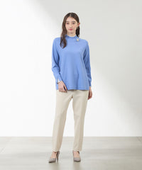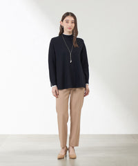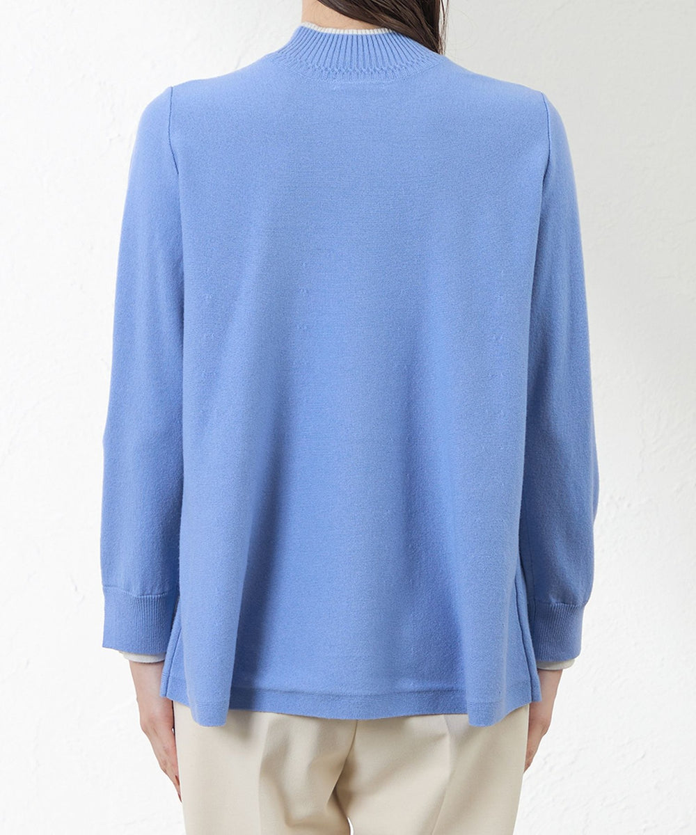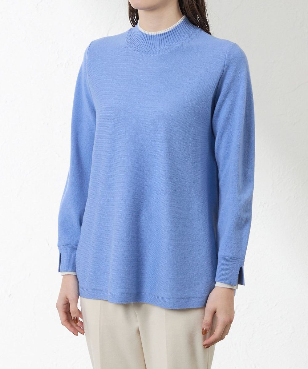 身頃はややゆったりとした着心地ですが、袖はセットインですっきりしているのでコートの下でもゴロつかず着用できる点もポイントです。