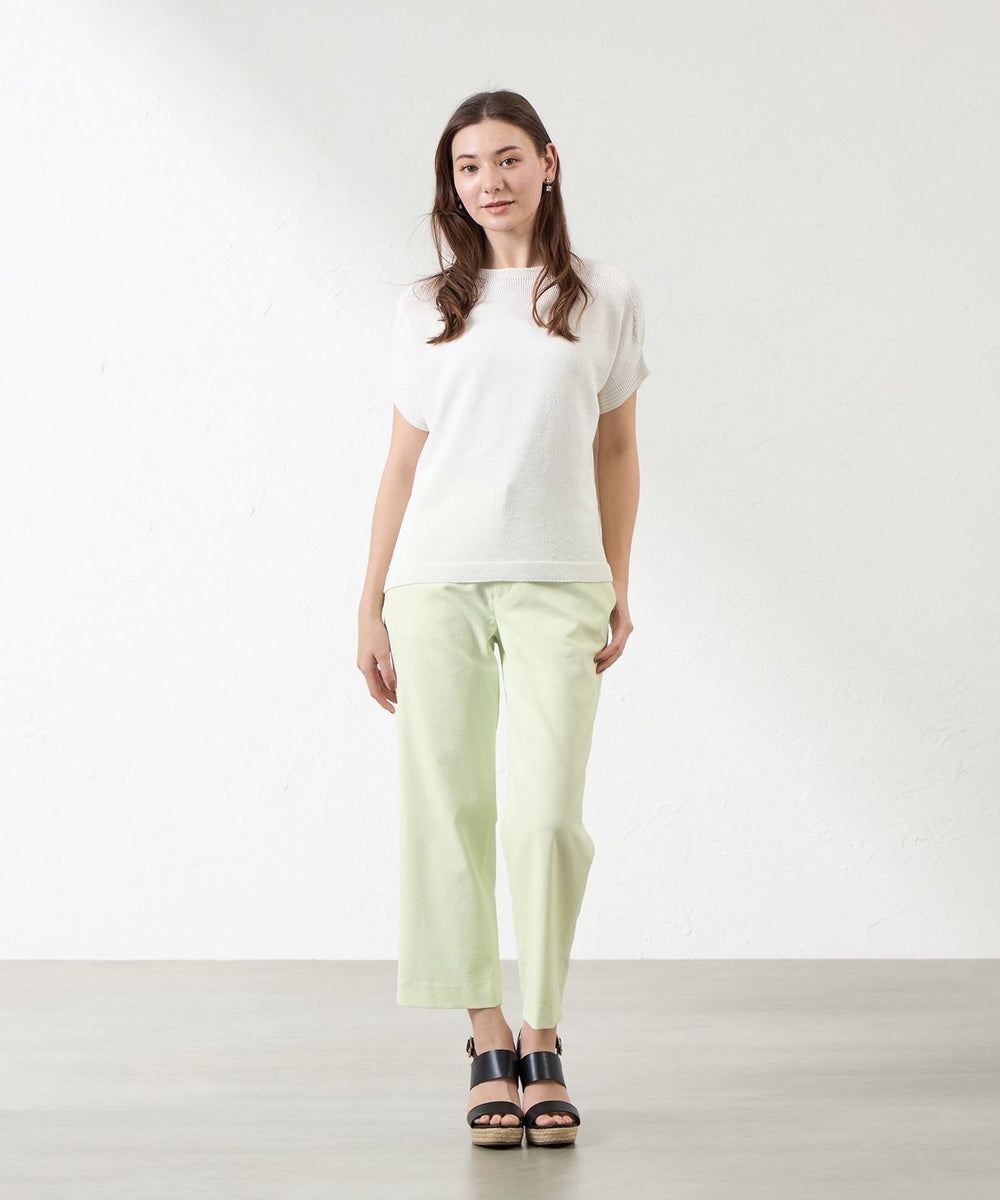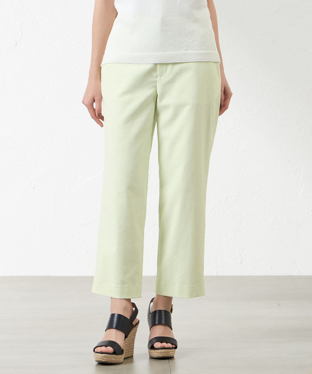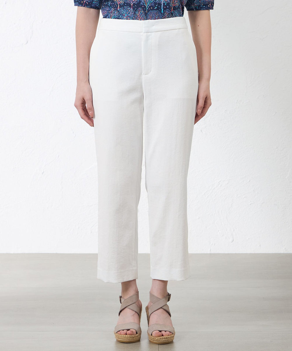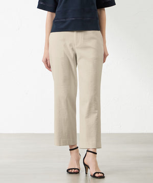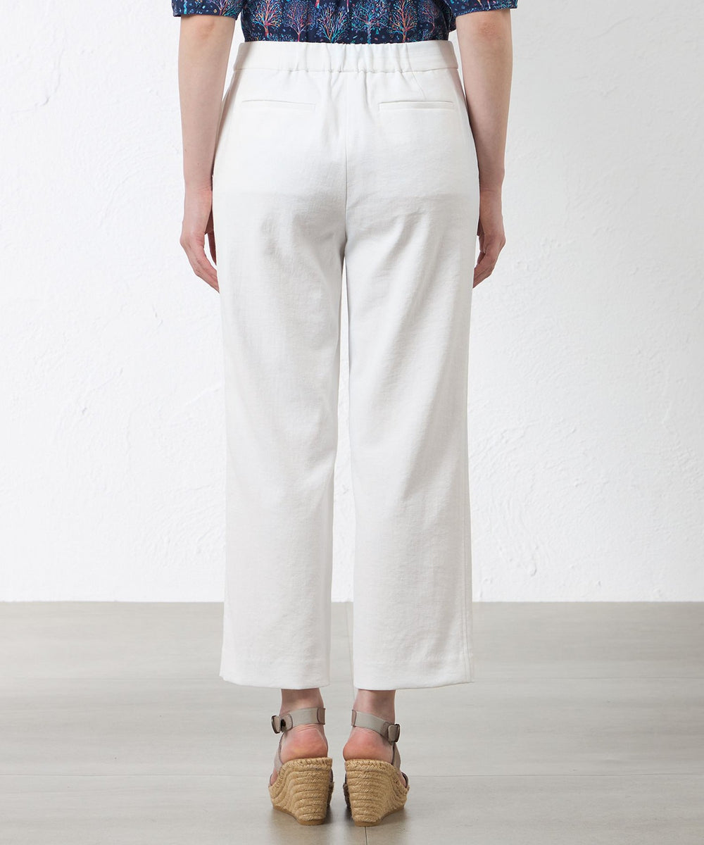 軽やかな足元を演出してくれるセミワイドクロップトパンツ。涼しげな短めの着丈はトップスとのバランスも取りやすくすっきりと見え、暑い季節にも活躍してくれる一枚です。裏地無しで快適に着られ、後ろウエストはゴム入りでリラックスした履き心地です。