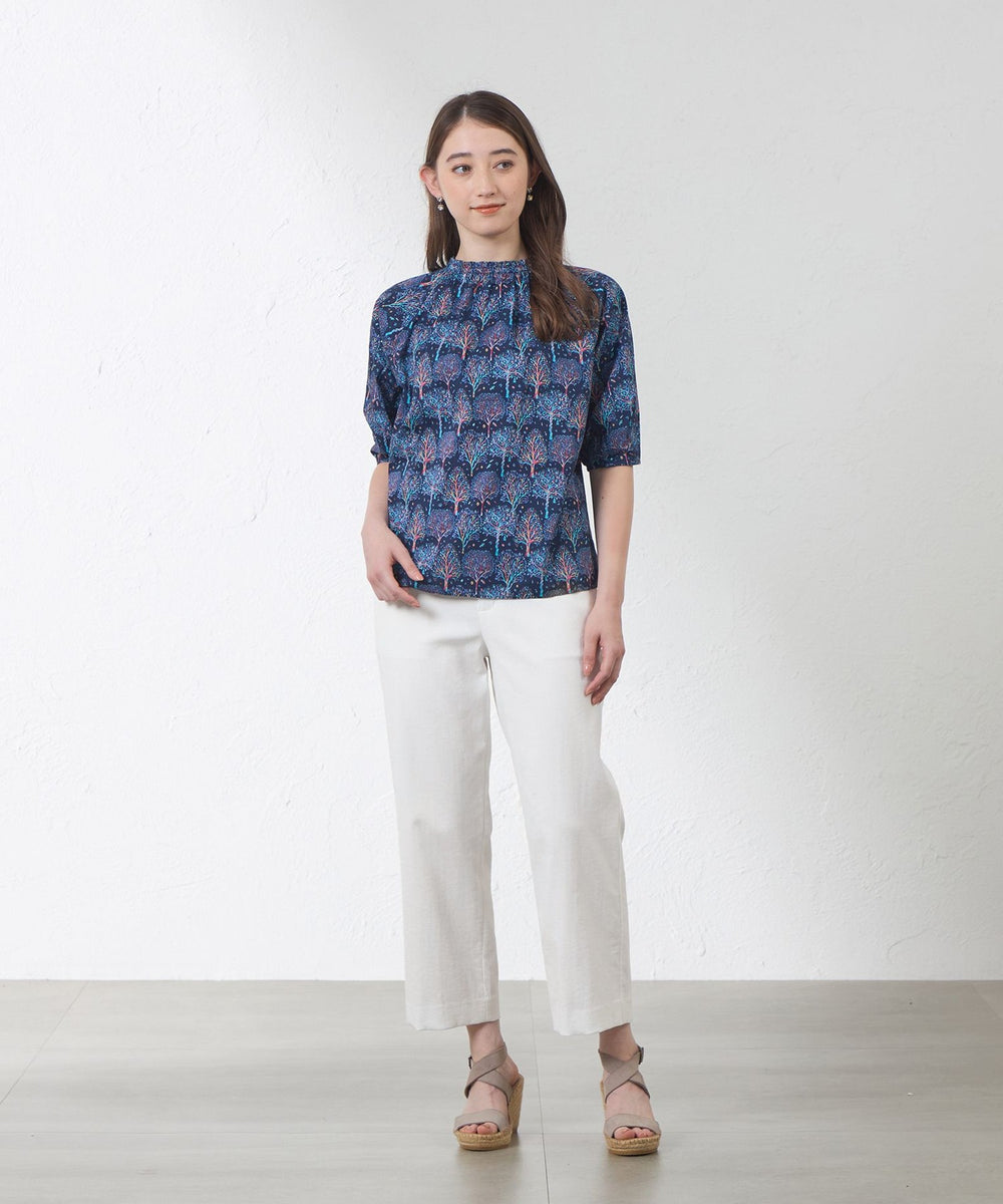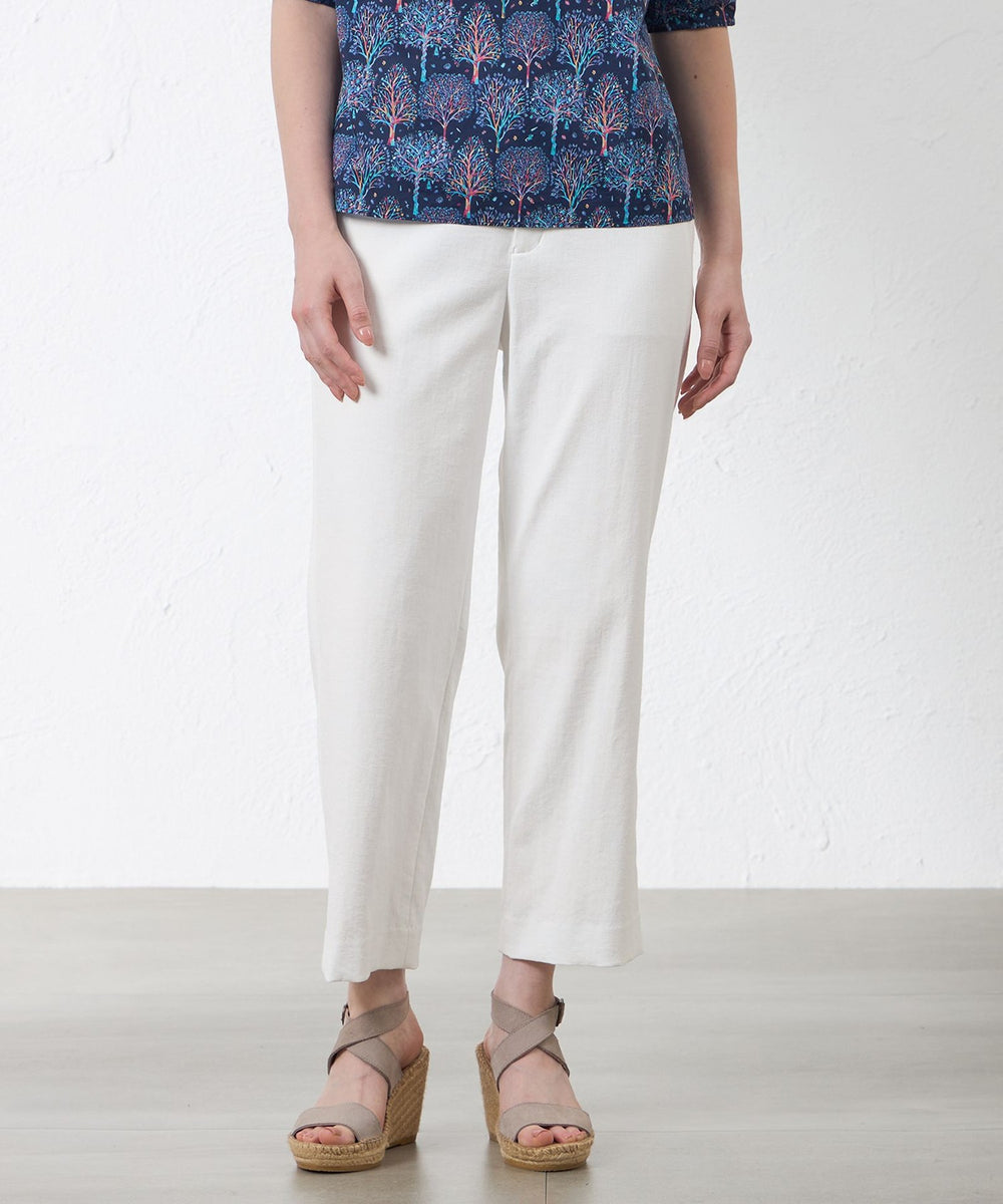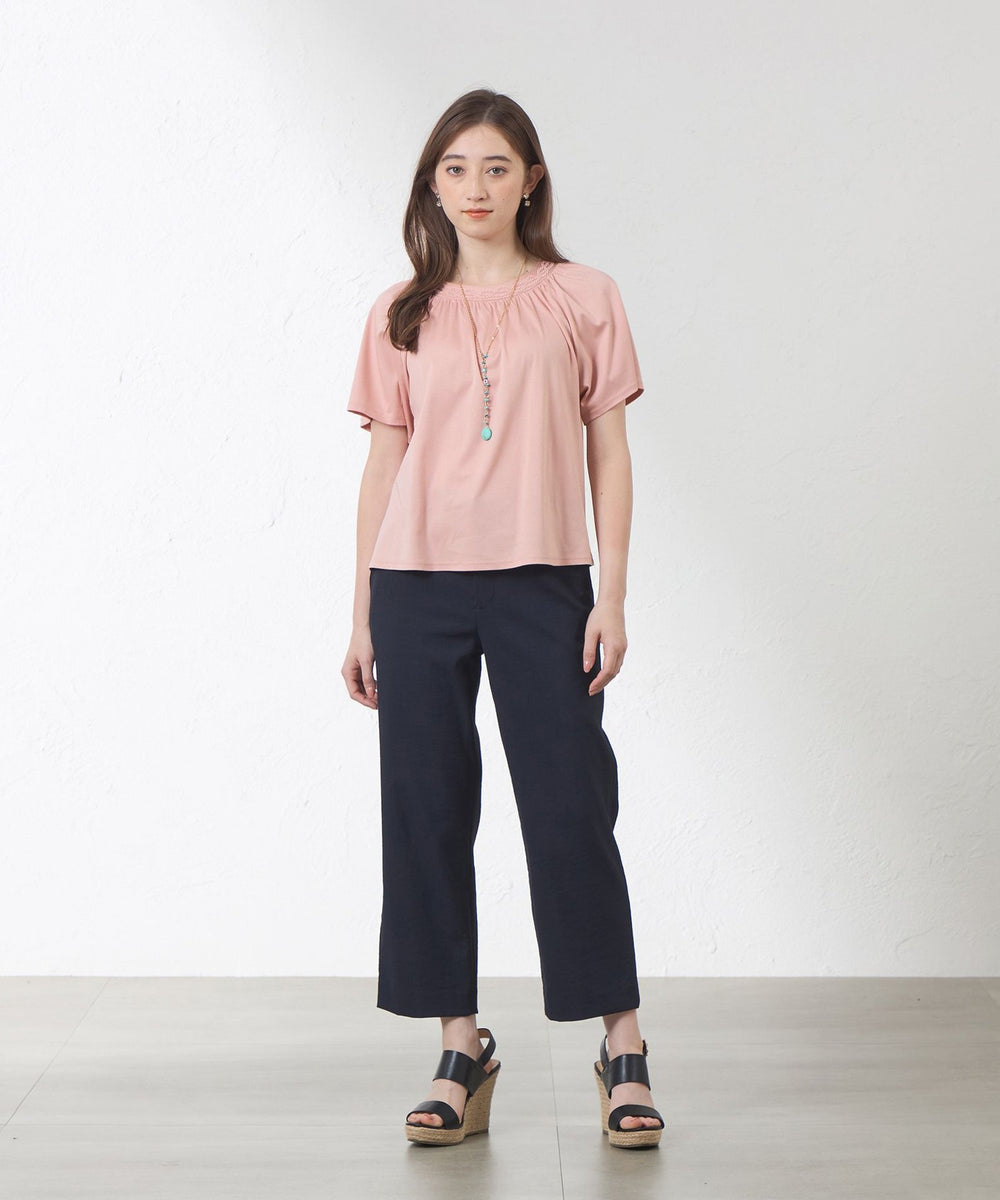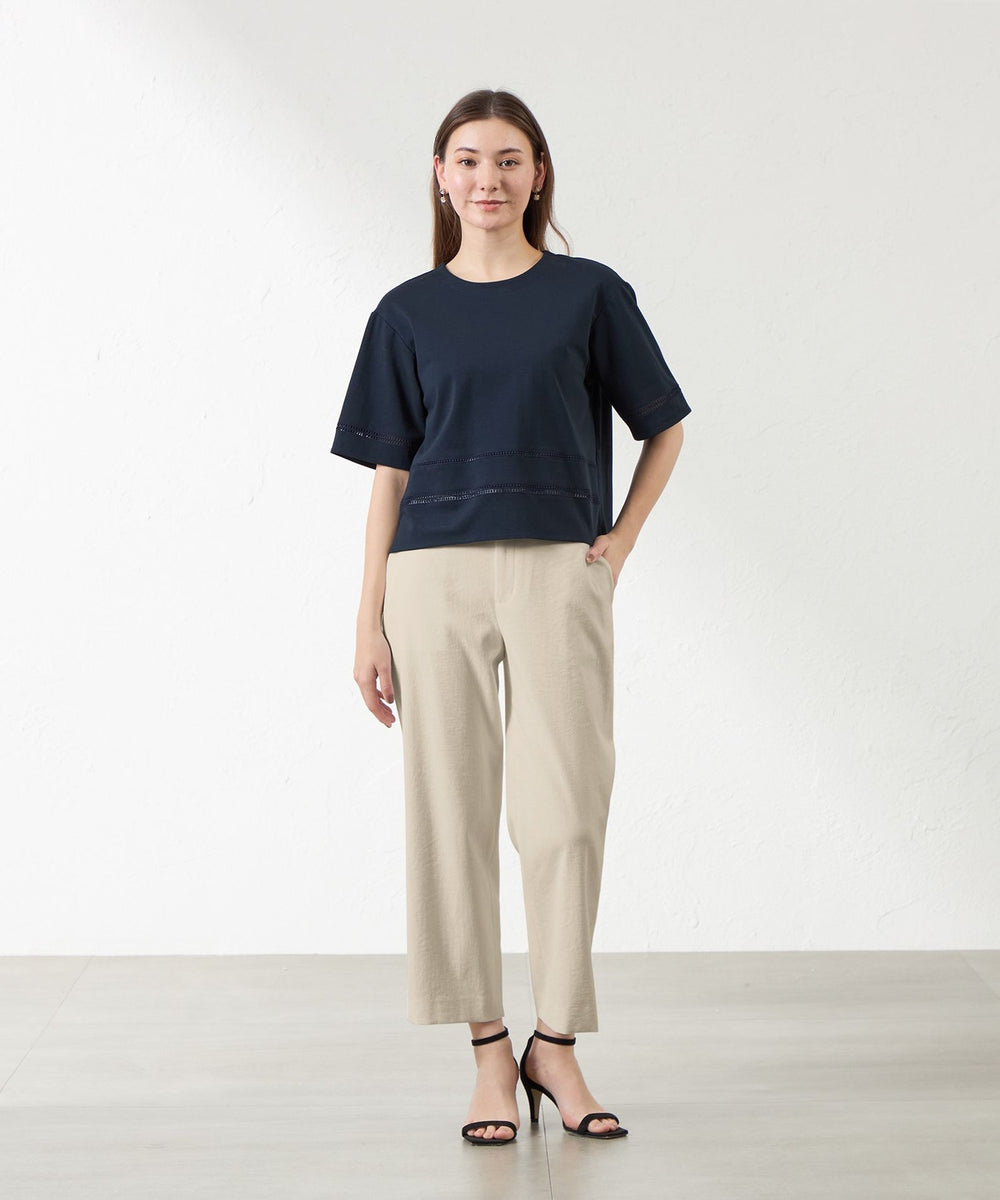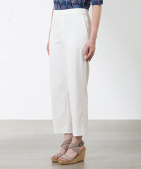 軽やかな足元を演出してくれるセミワイドクロップトパンツ。涼しげな短めの着丈はトップスとのバランスも取りやすくすっきりと見え、暑い季節にも活躍してくれる一枚です。裏地無しで快適に着られ、後ろウエストはゴム入りでリラックスした履き心地です。