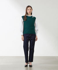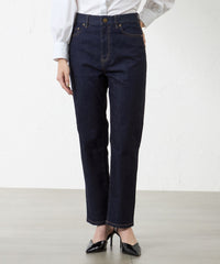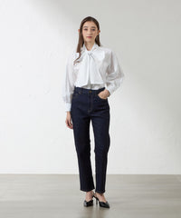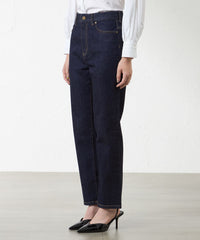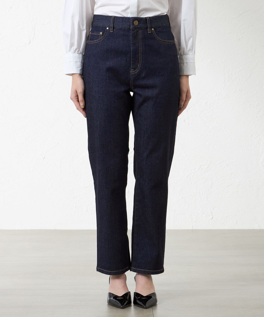 ストレッチデニムです。硬すぎず柔らかすぎない、着心地の良いデニムで、キレイ目カジュアルに使えるテーパードです。細すぎず太すぎないシルエットなのでオーバーブラウスなどとも相性が◎